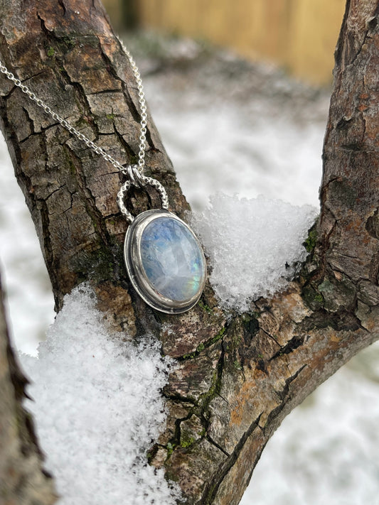 *Winter Moon • Sterling Silver Rainbow Moonstone Pendant Necklace