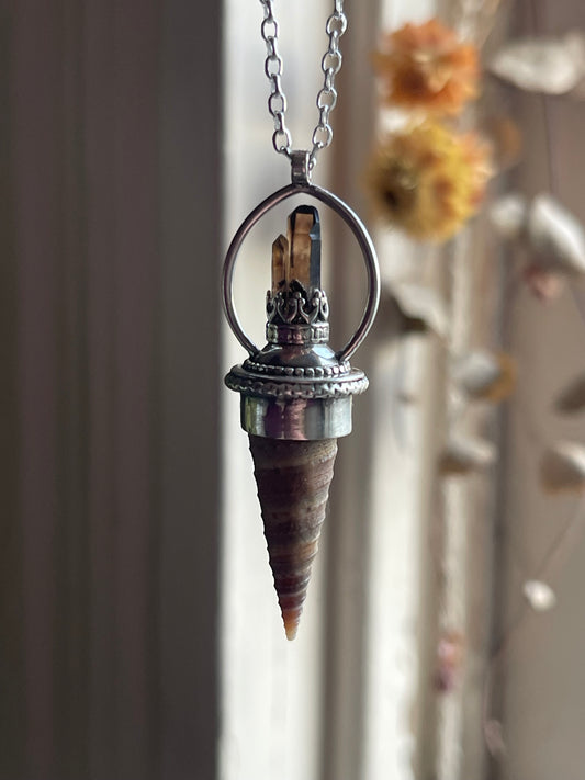 Ocean Royalty: Smokey Quartz Crystal Cone Shell Statement Necklace