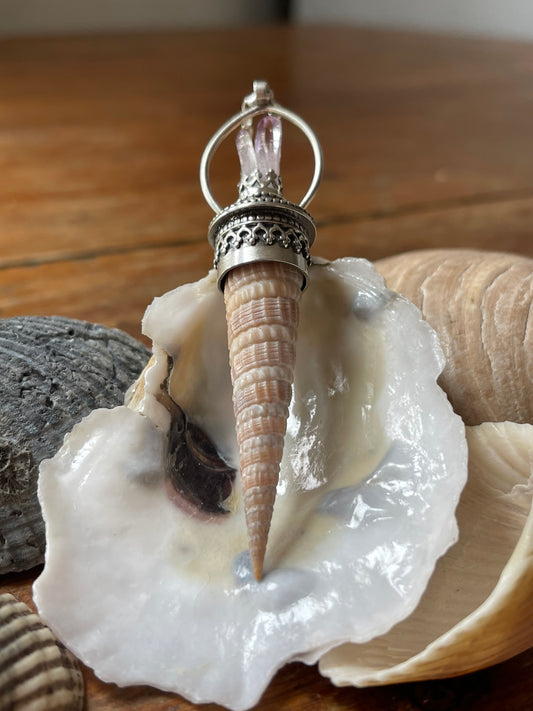 Ocean Royalty • Amethyst Auger Shell Statement Necklace