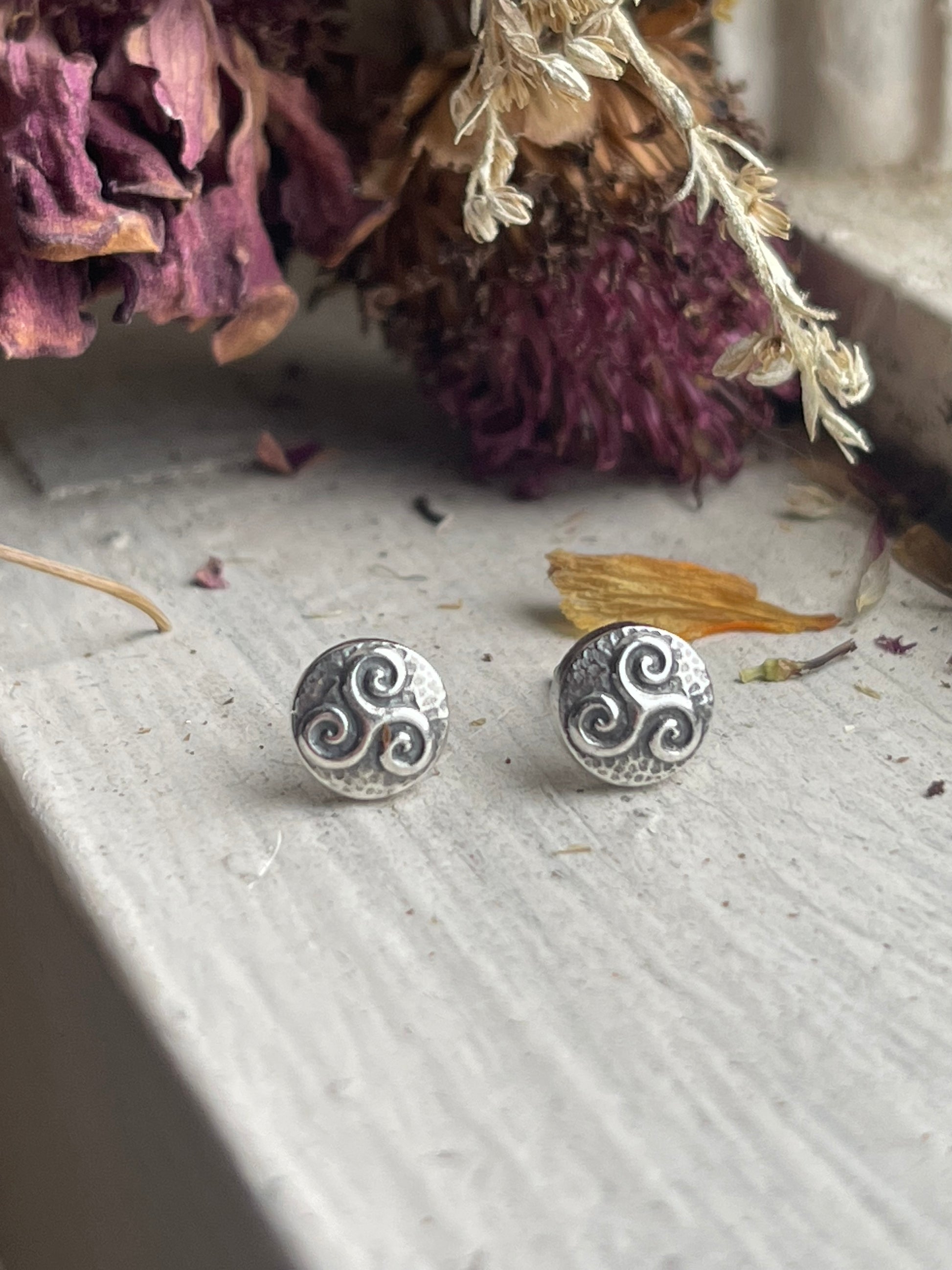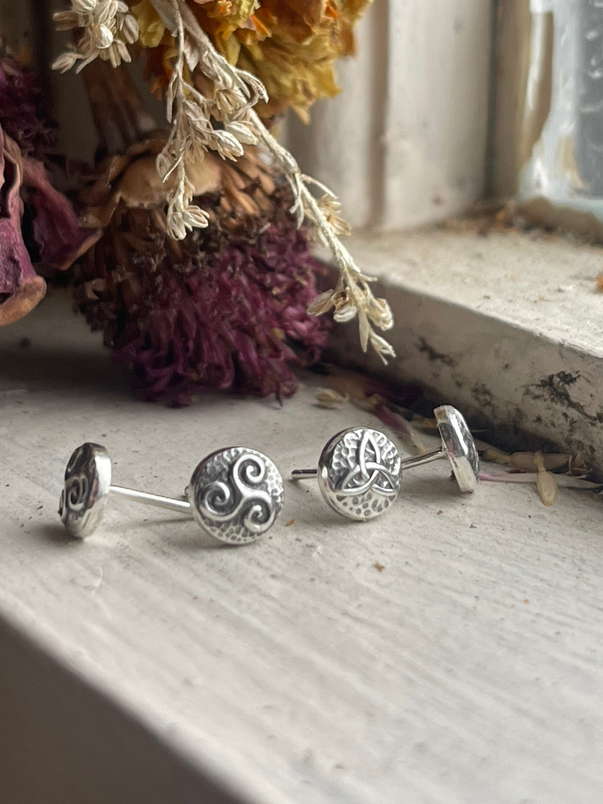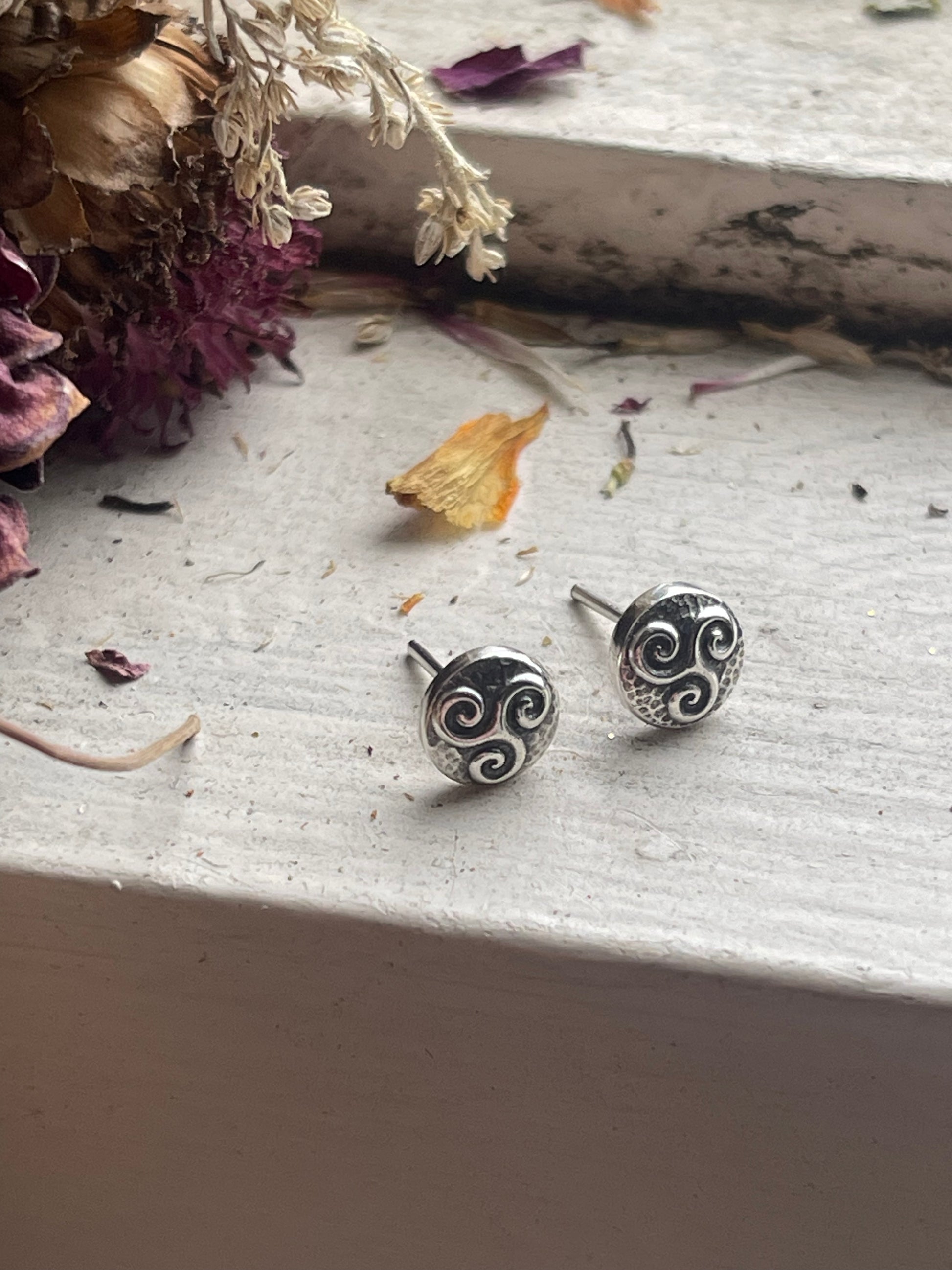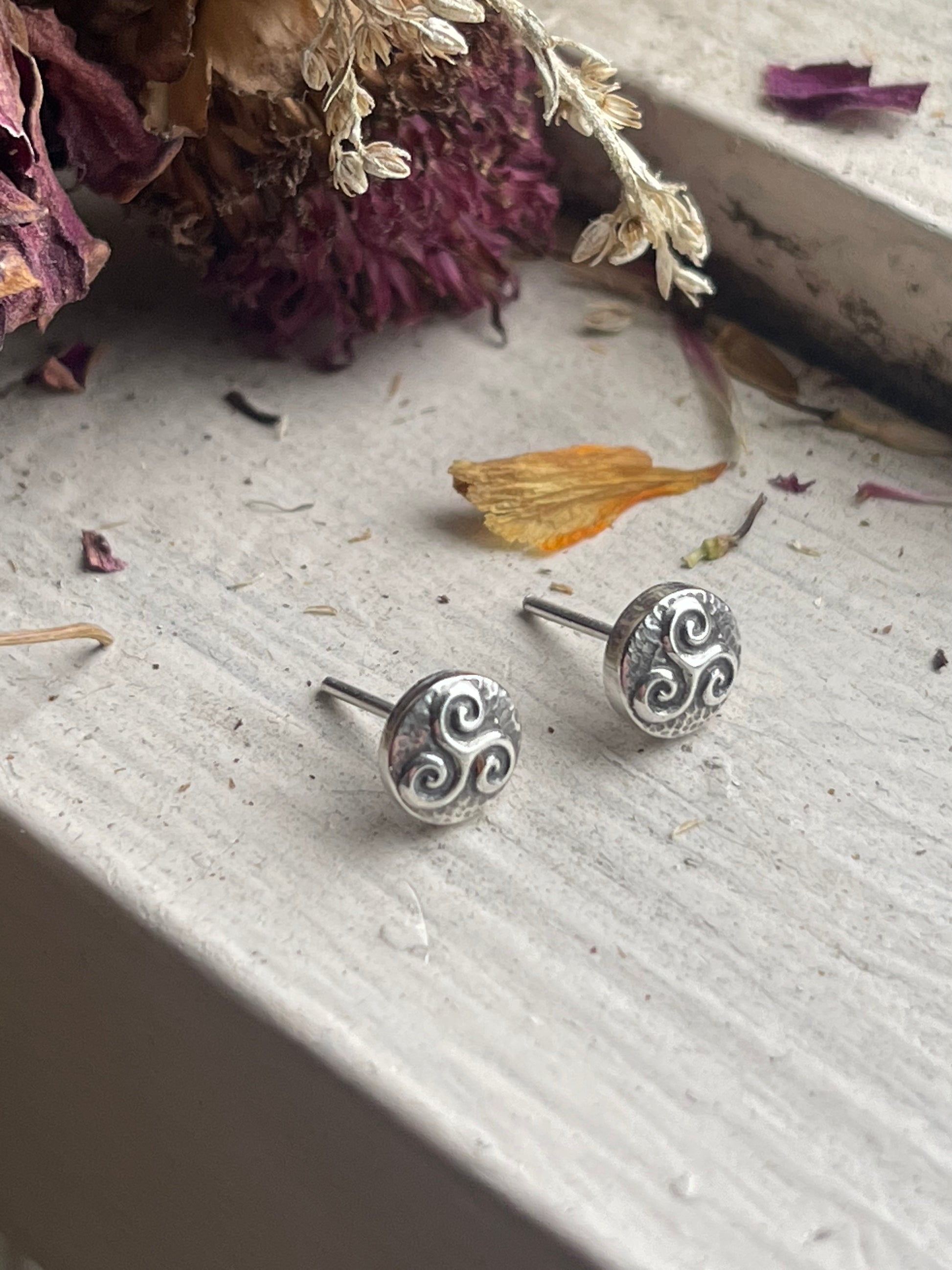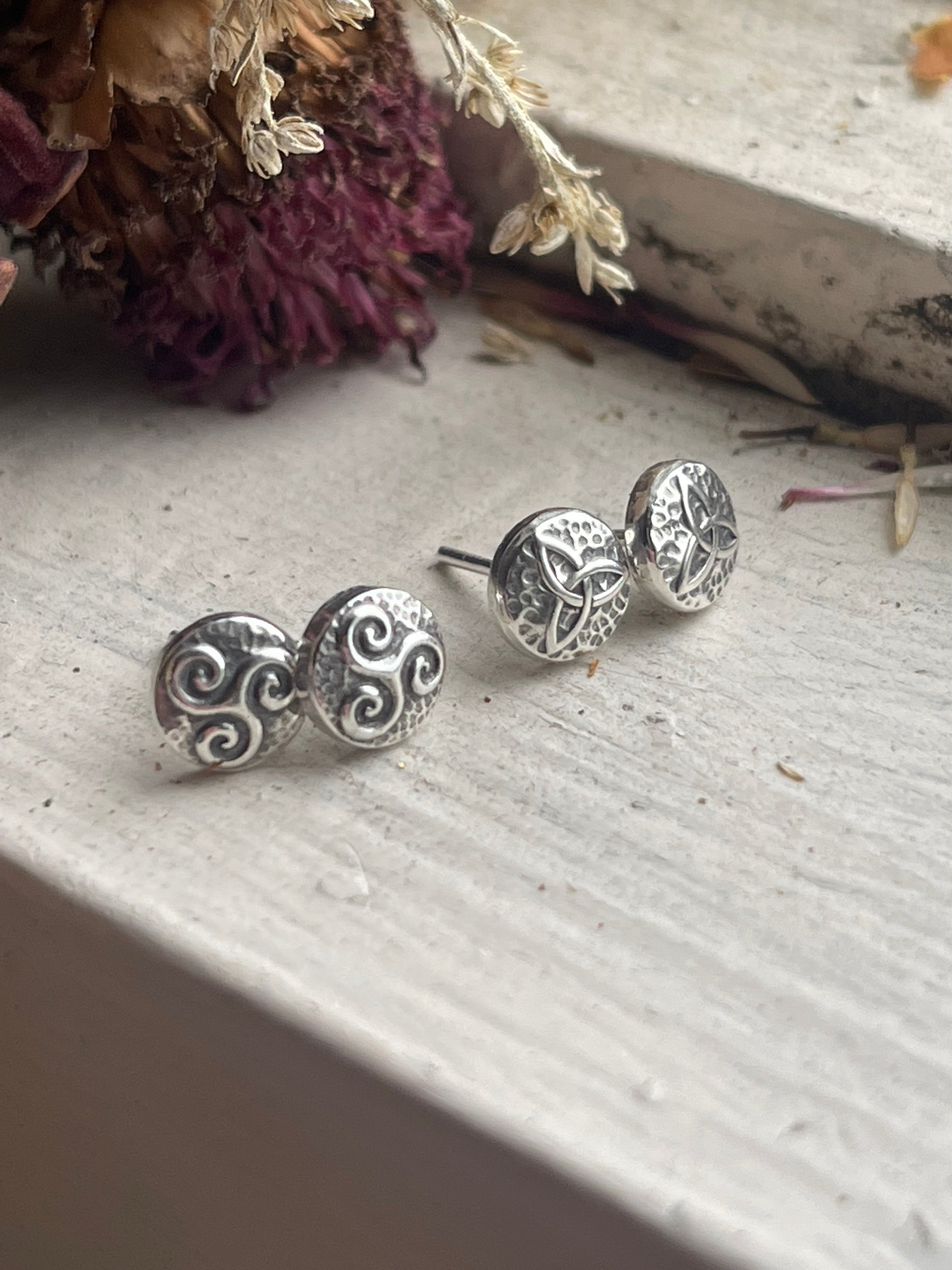 Add a touch of Celtic charm with these recycled silver stud earrings. Small but full of detail, these micro Celtic knot designs add dimension and boldness to your look. Choose from the classic triskele or famous triquetra. Posts are safe for sensitive ears.