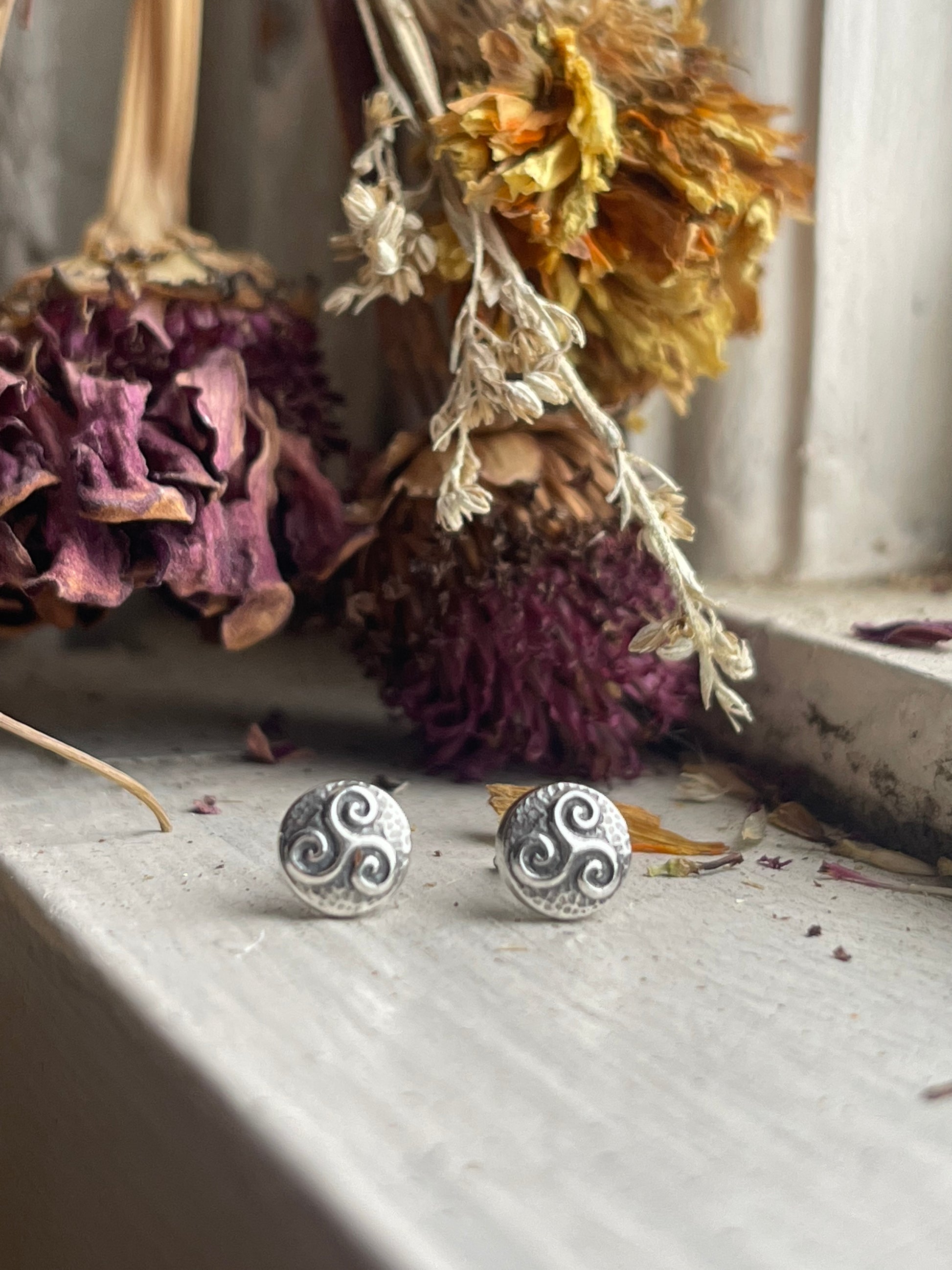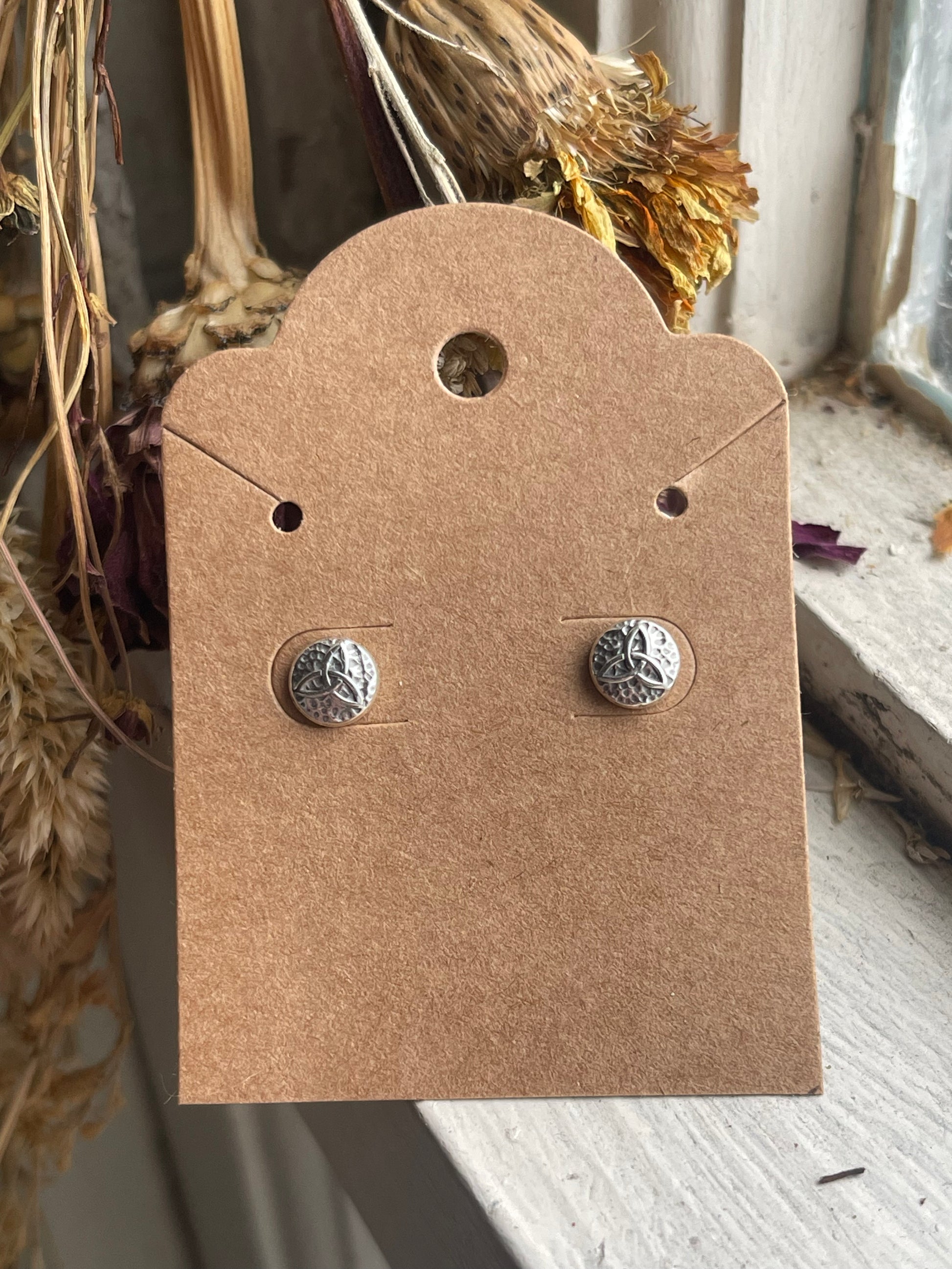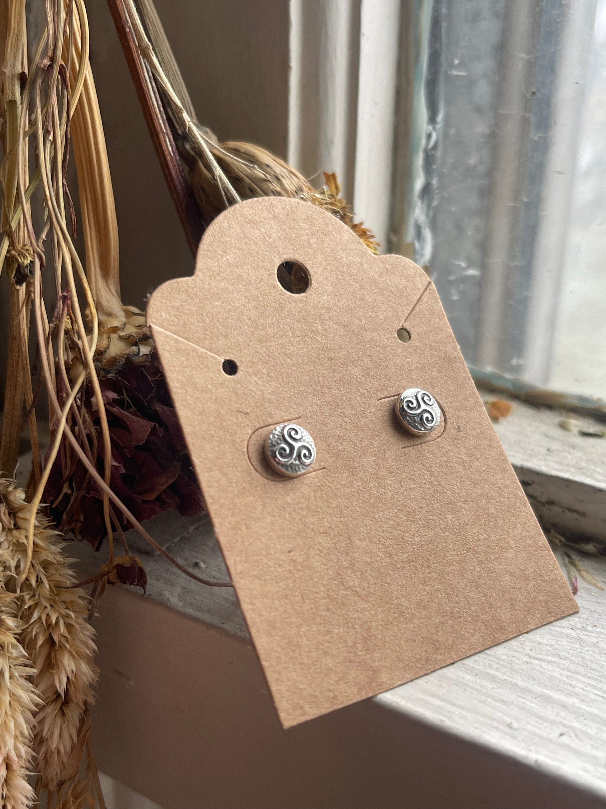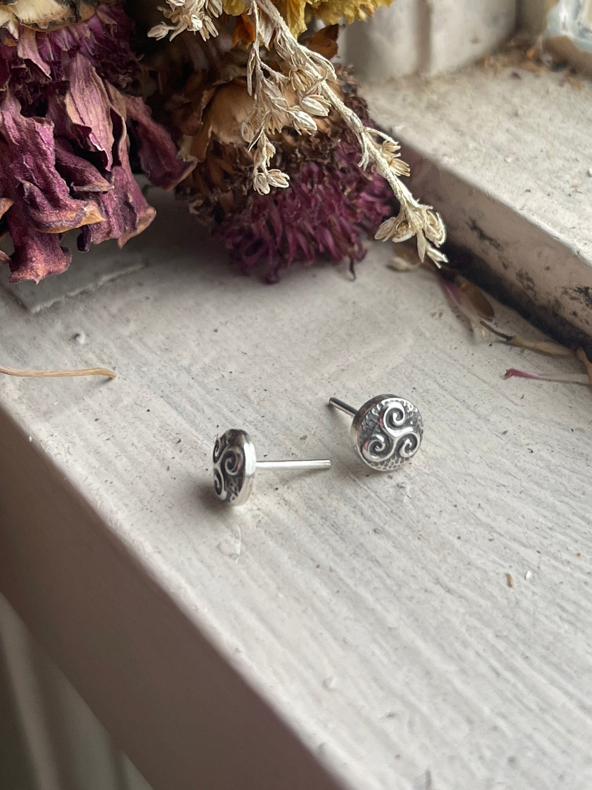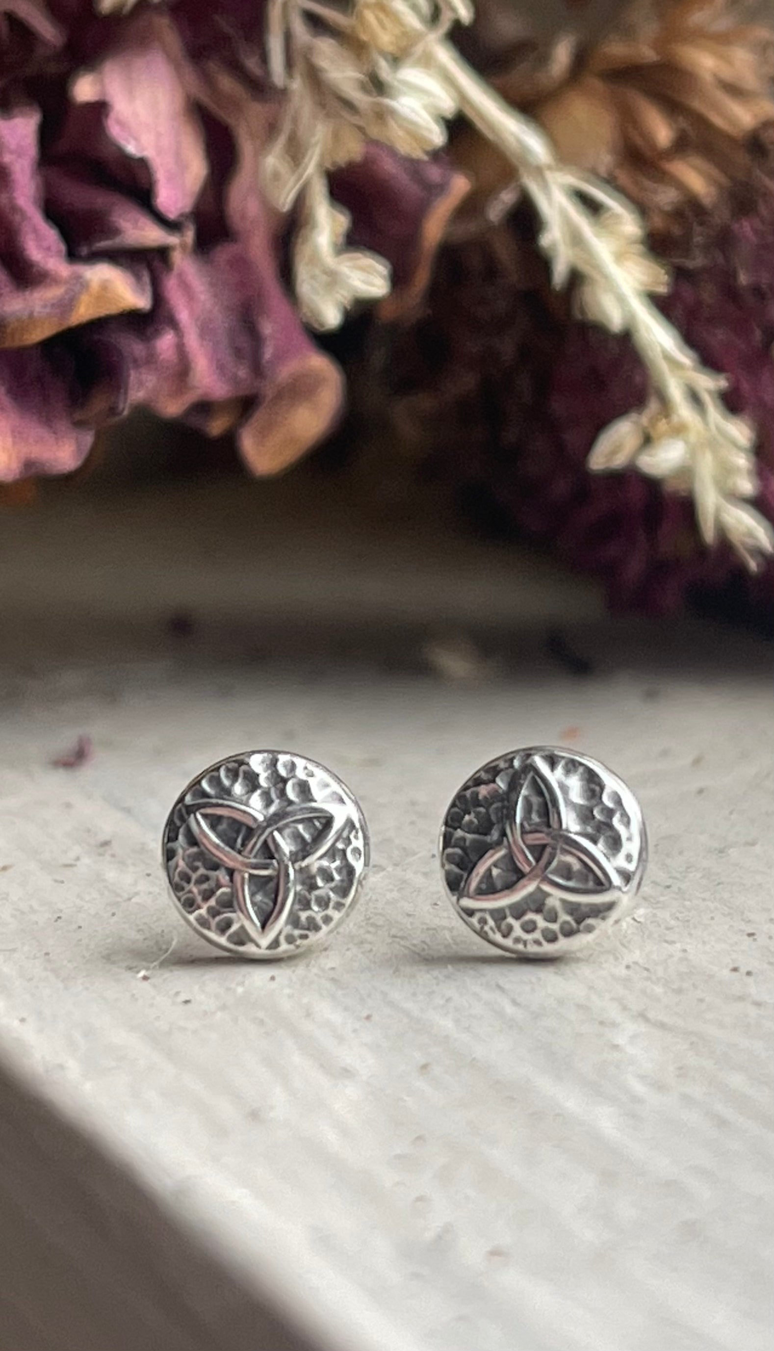 Add a touch of Celtic charm with these recycled silver stud earrings. Small but full of detail, these micro Celtic knot designs add dimension and boldness to your look. Choose from the classic triskele or famous triquetra. Posts are safe for sensitive ears.