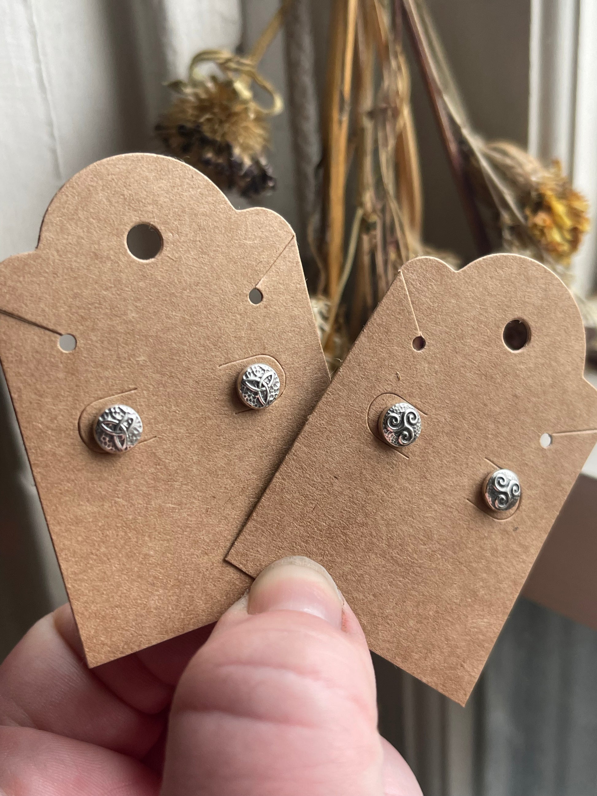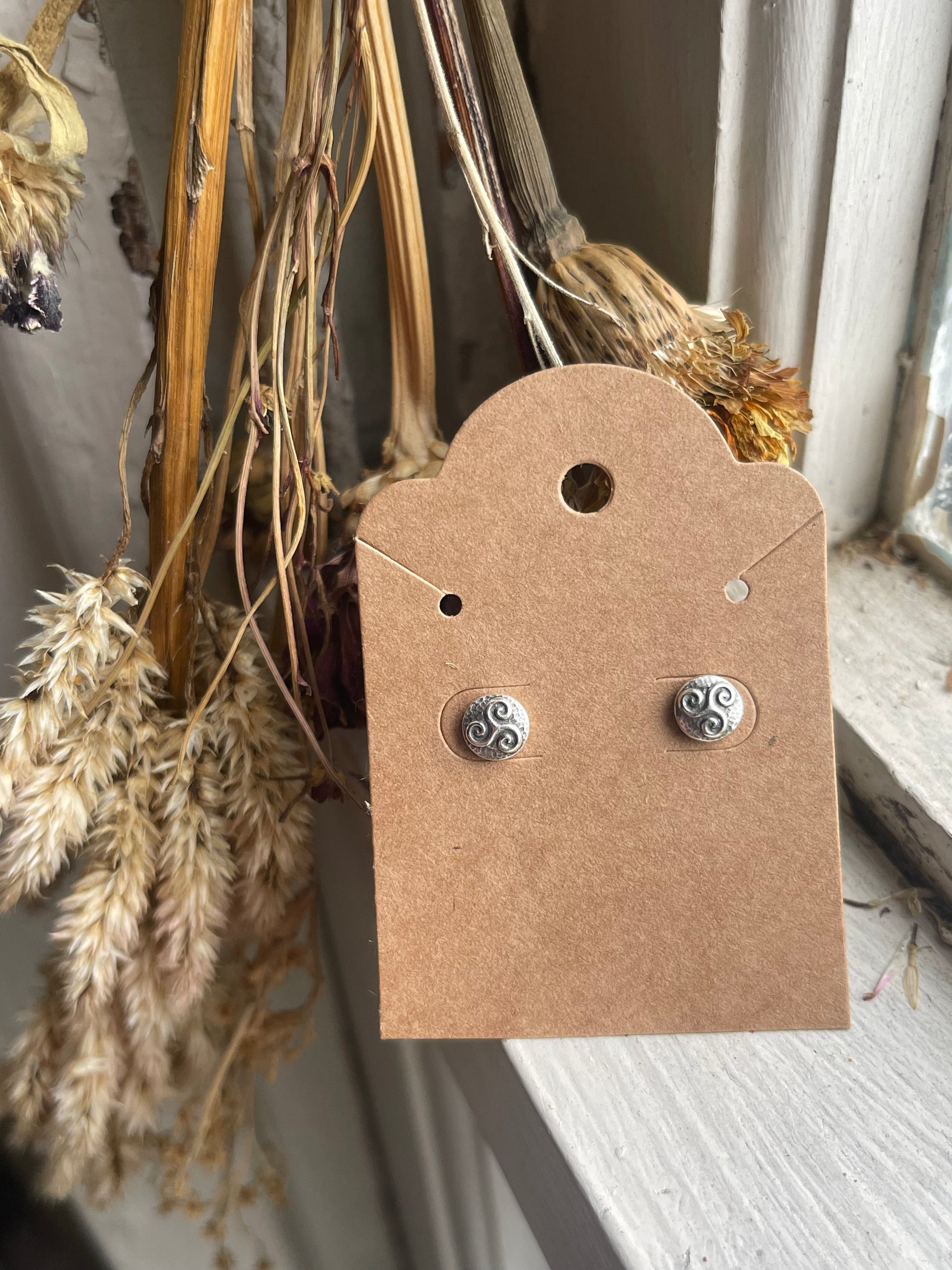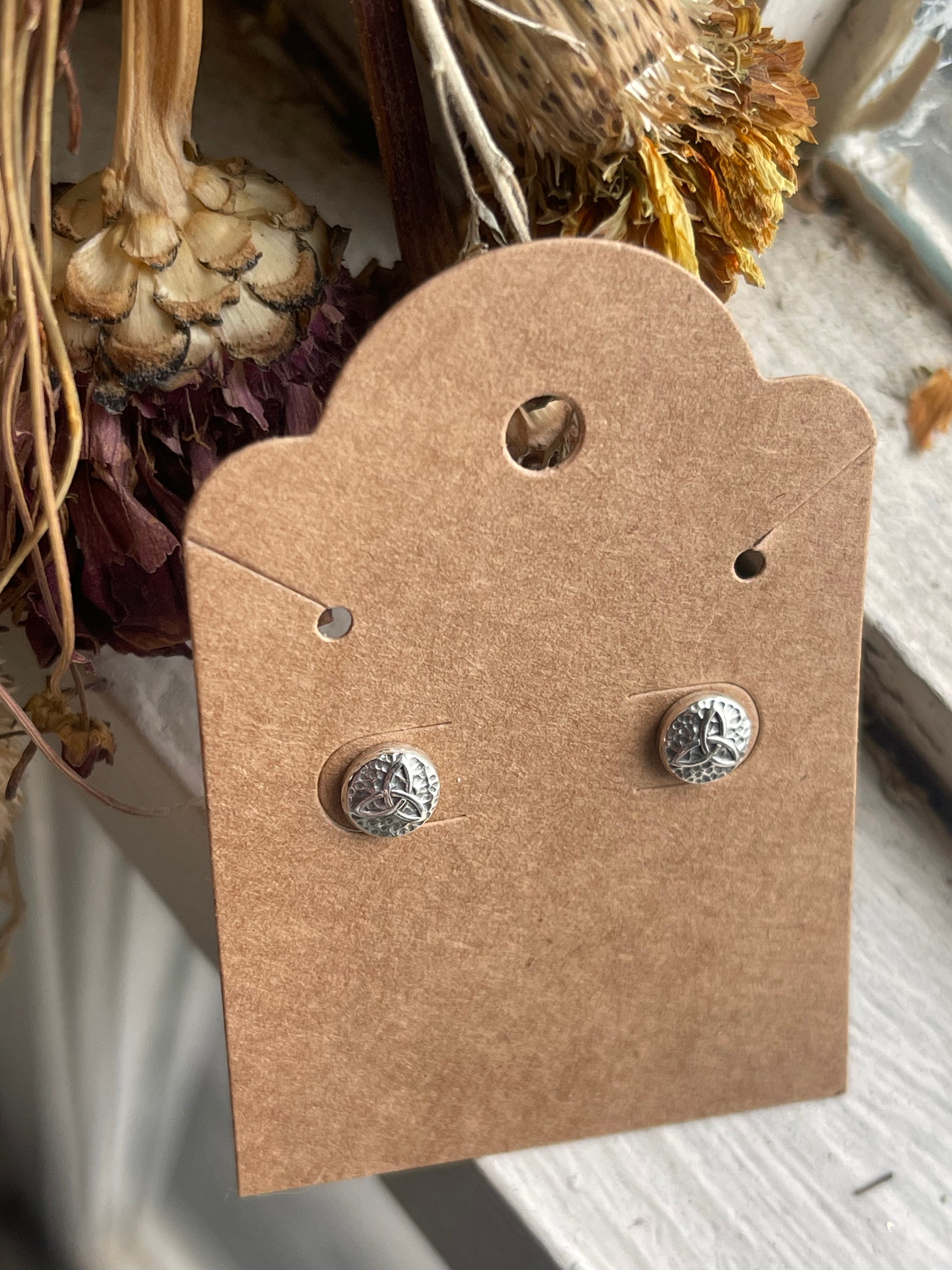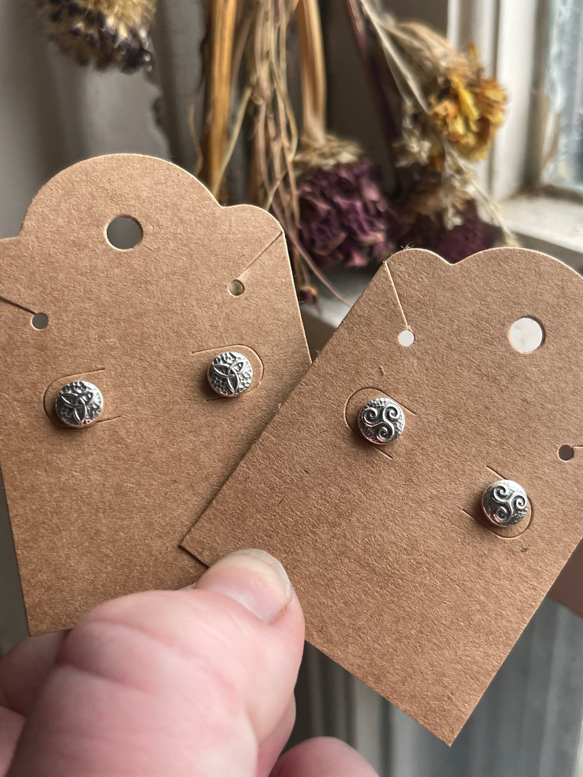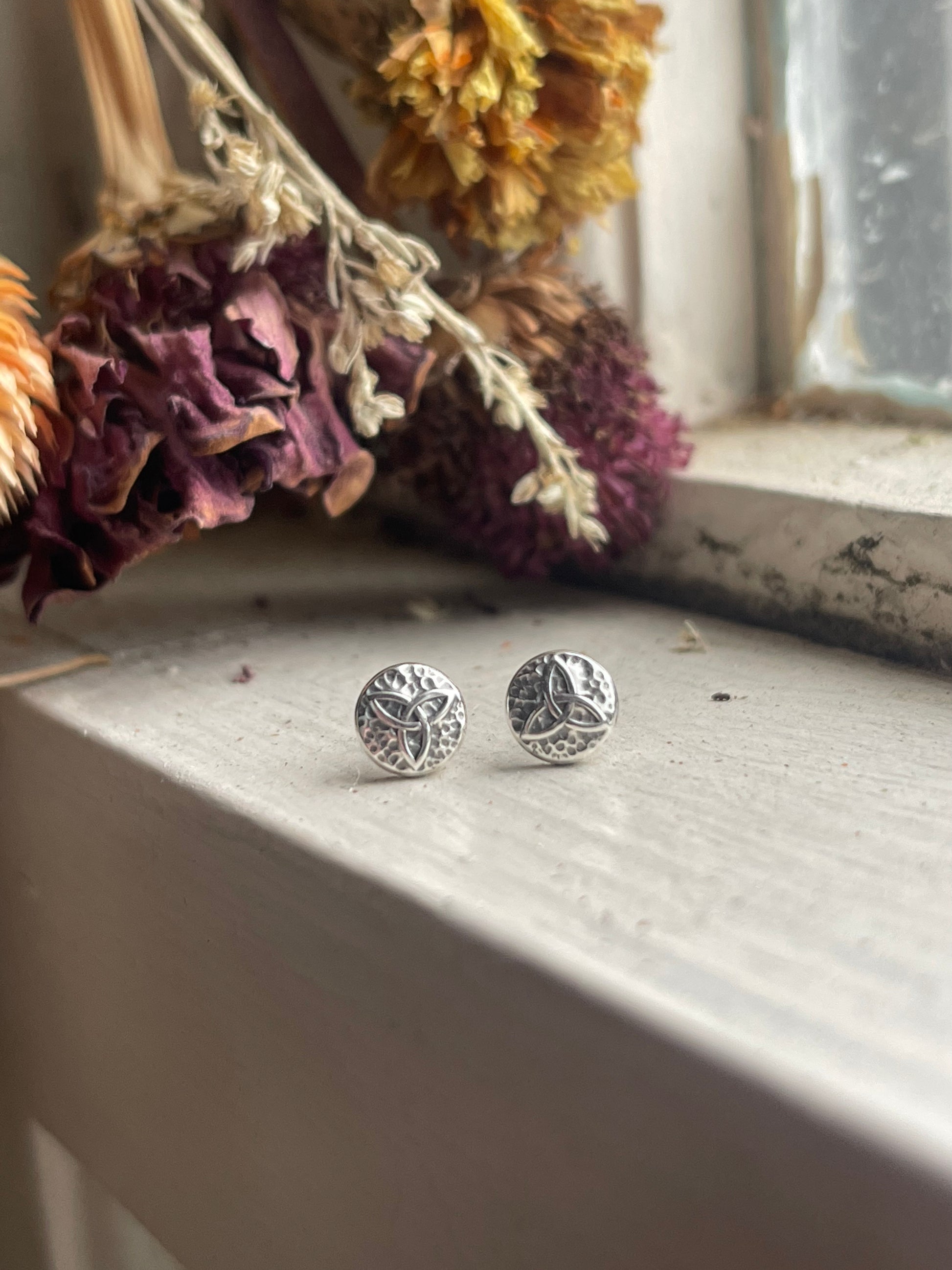 Add a touch of Celtic charm with these recycled silver stud earrings. Small but full of detail, these micro Celtic knot designs add dimension and boldness to your look. Choose from the classic triskele or famous triquetra. Posts are safe for sensitive ears.