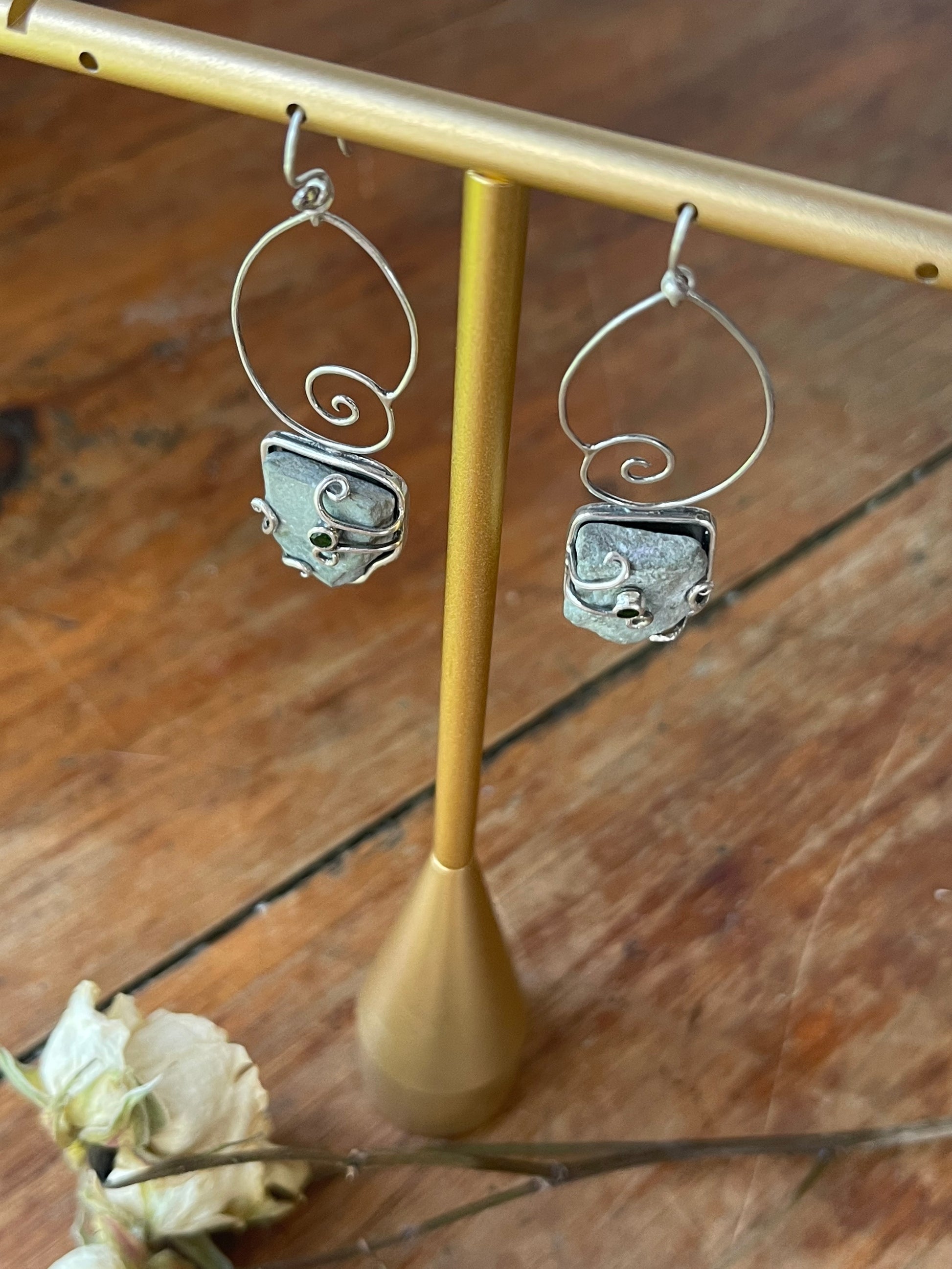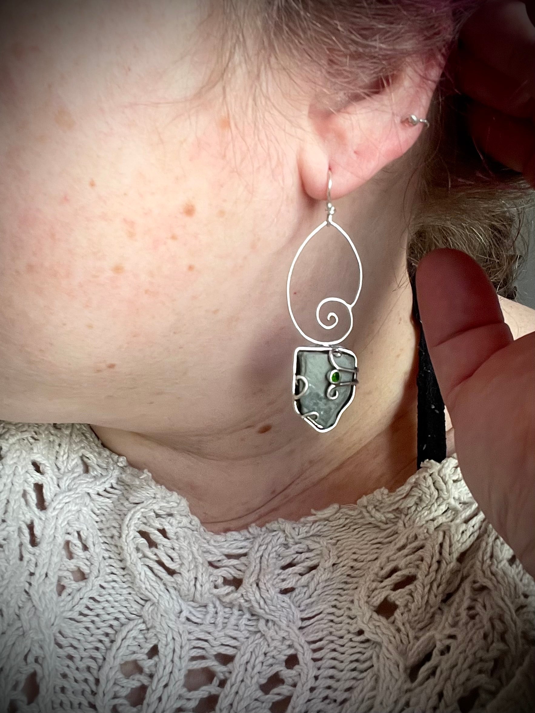 Forest Snail – Sterling Silver, Glacier River Stone & Chrome Diopside Earrings