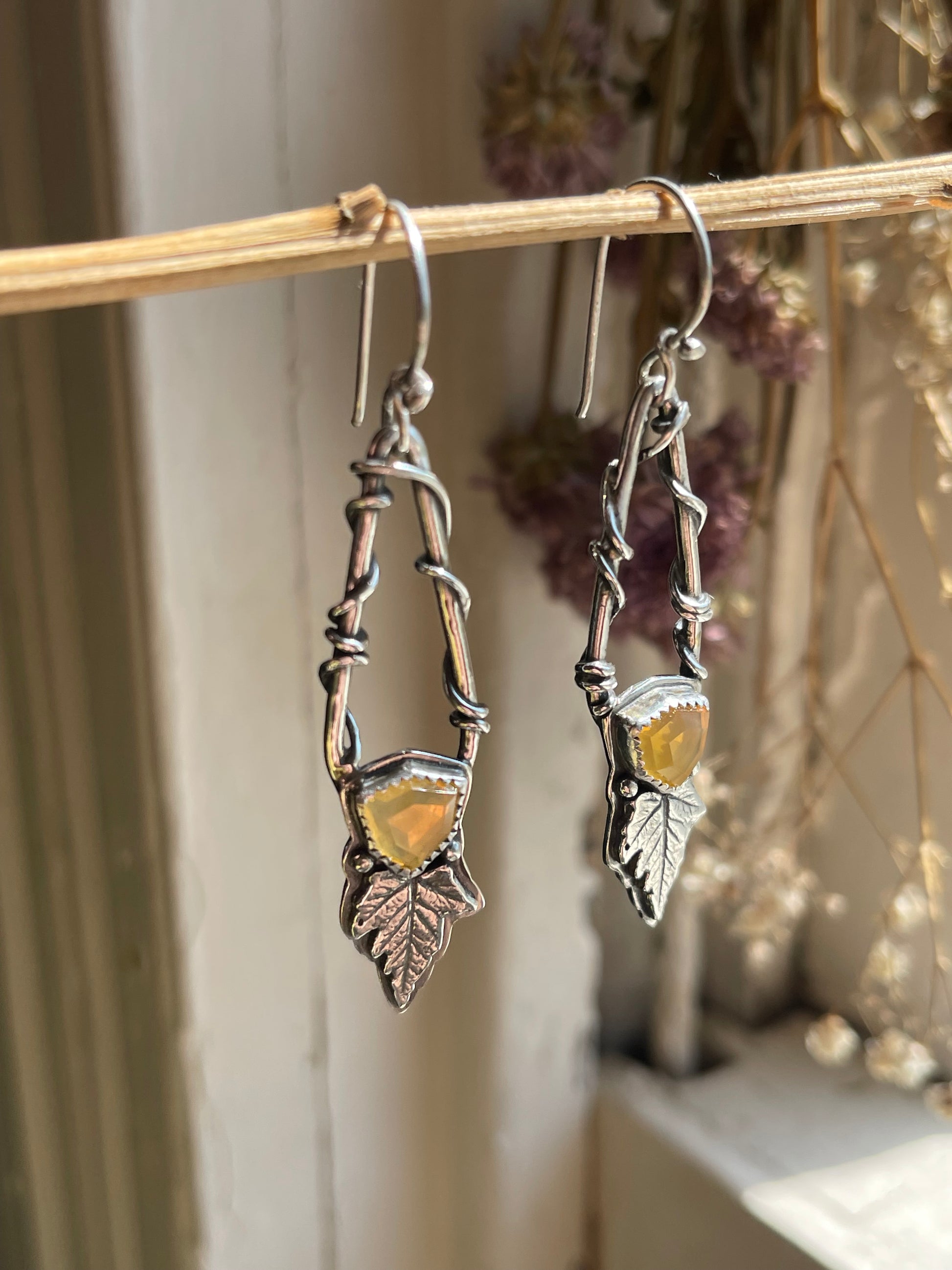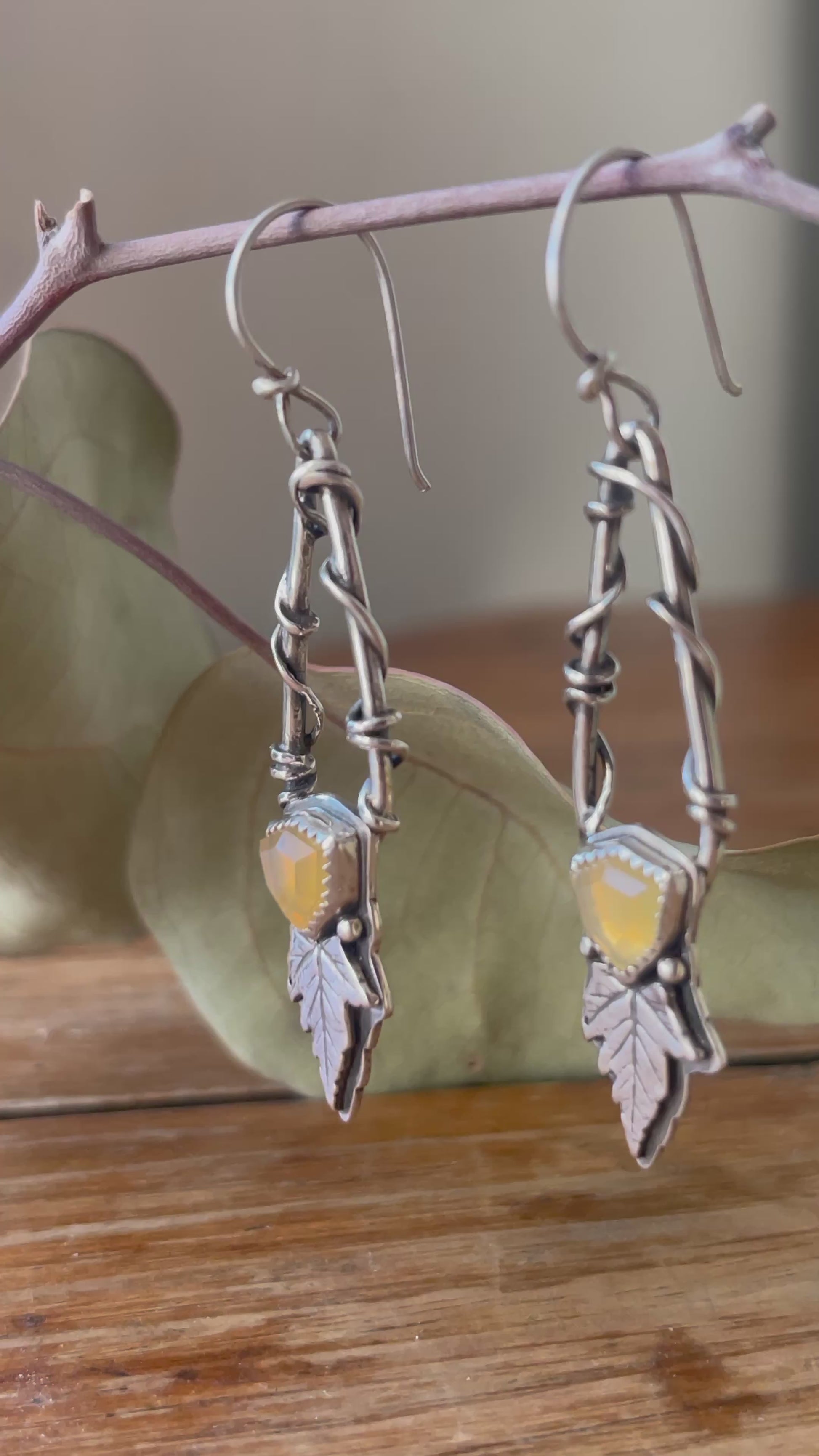Leaves of Lórien • Oregon Fire Opal Leaf Drop Dangle Earrings