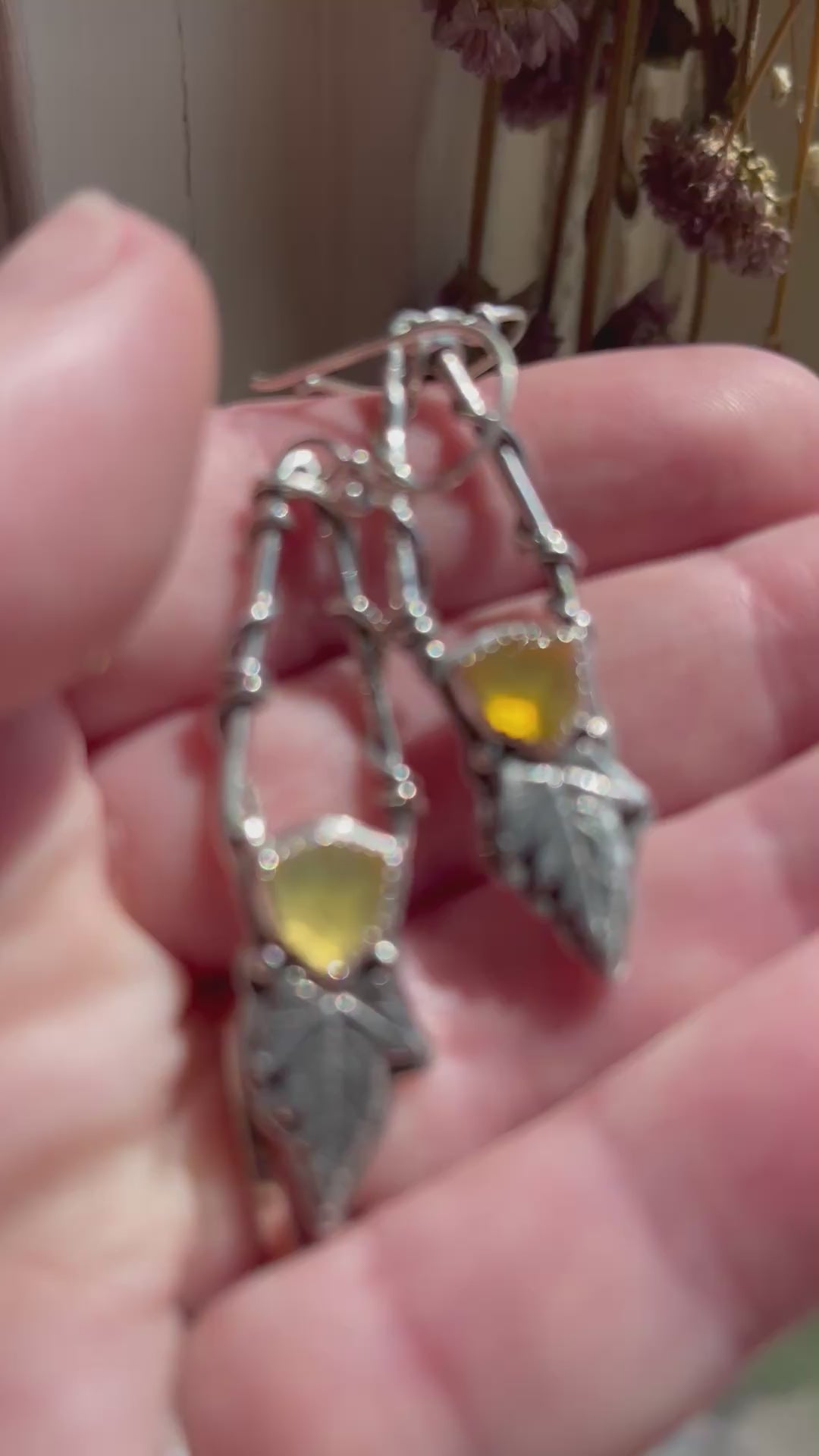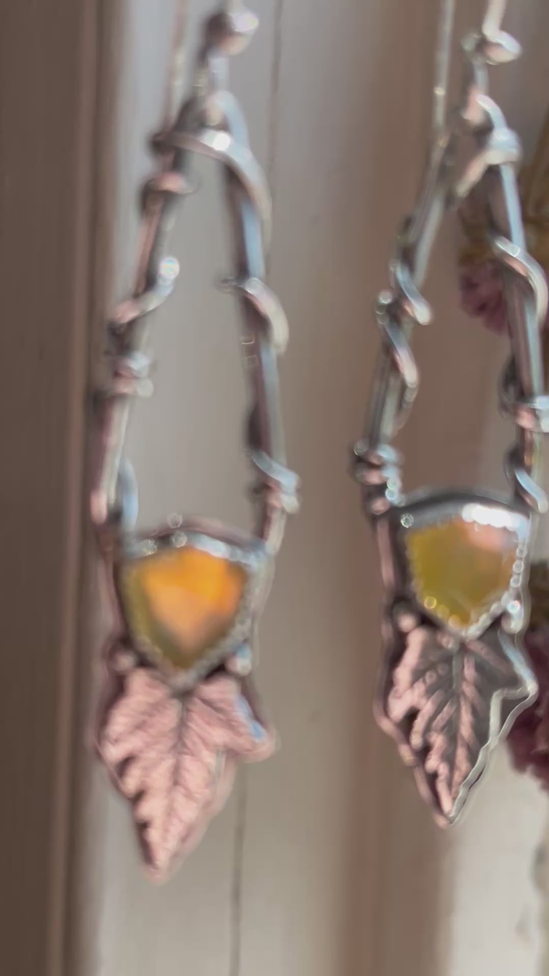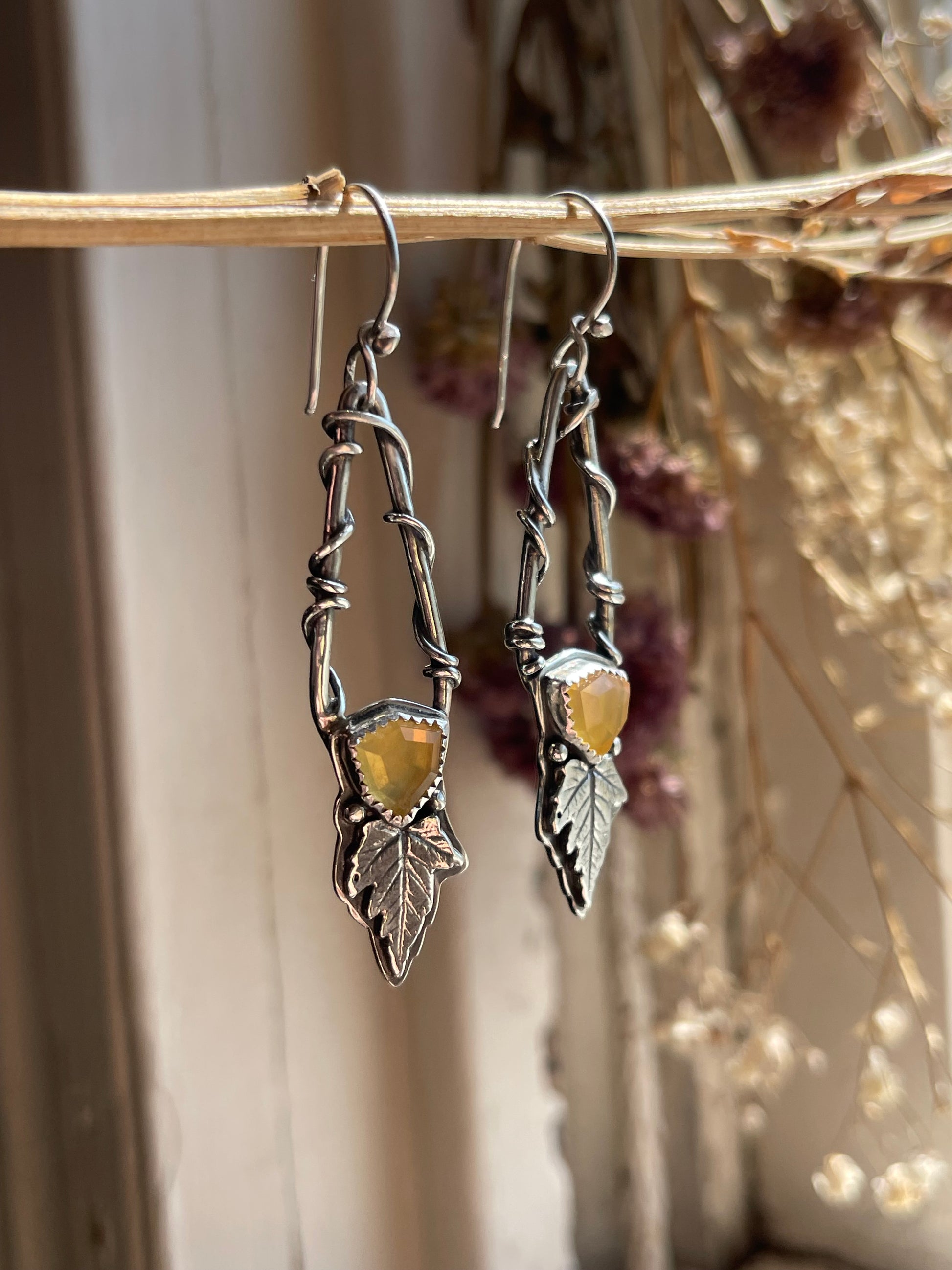 Step into a realm of enchantment with the *Leaves of Lórien* Statement Earrings, a breathtaking celebration of nature and artistry. These handcrafted sterling silver earrings feature the exquisite Oregon fire opal, a gemstone with a history as fiery and storied as the volcanoes that shaped it. Known for their mesmerizing golden-yellow hues and iridescent flashes, these opals evoke the magic of a radiant sunset.