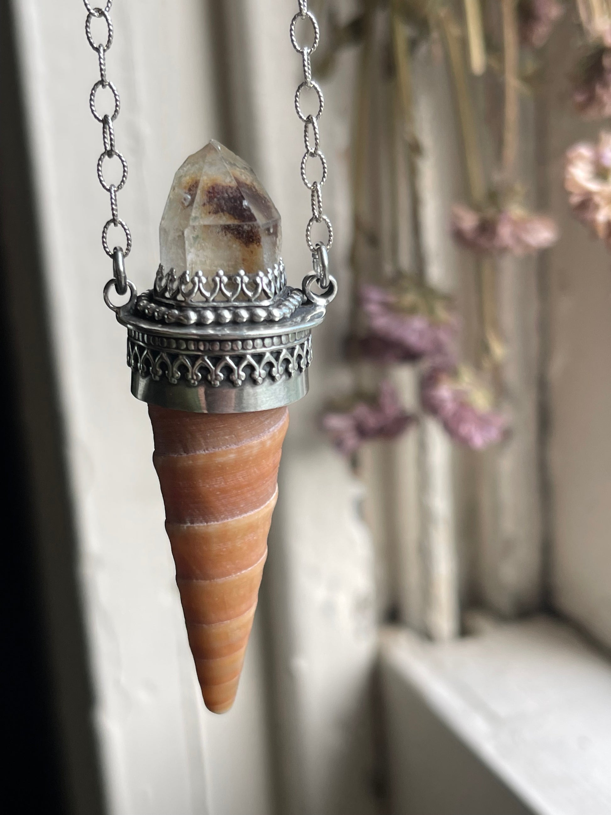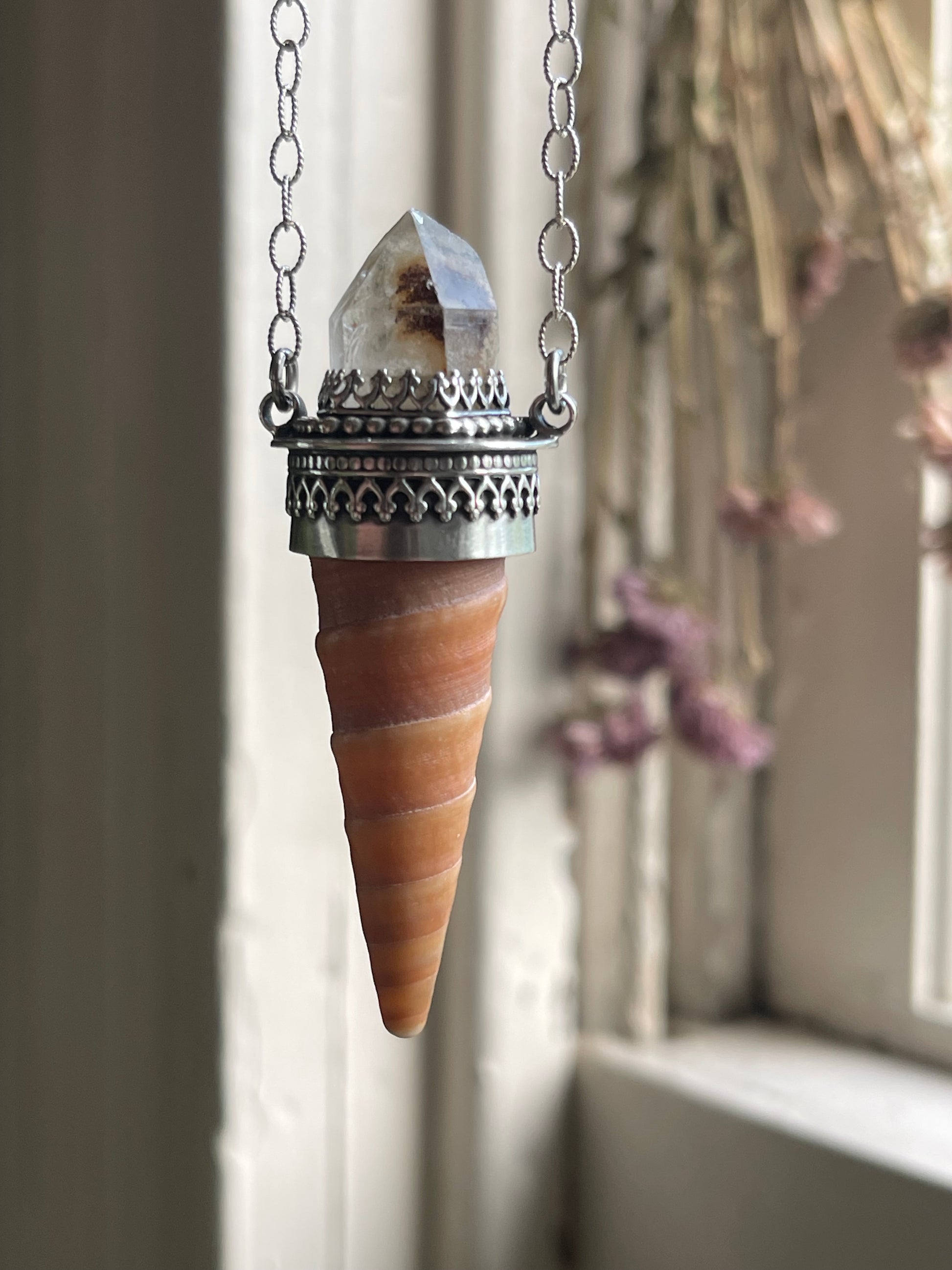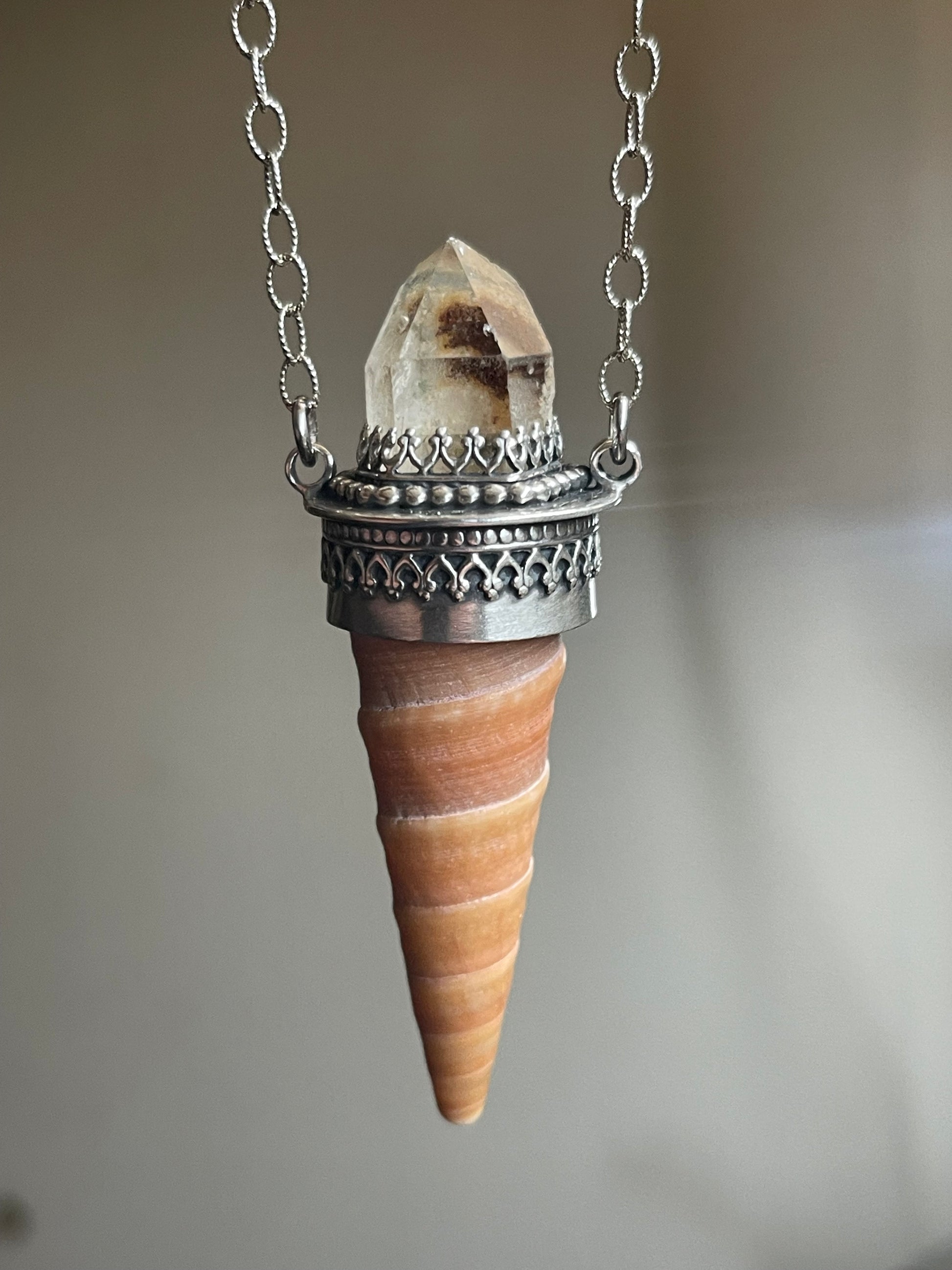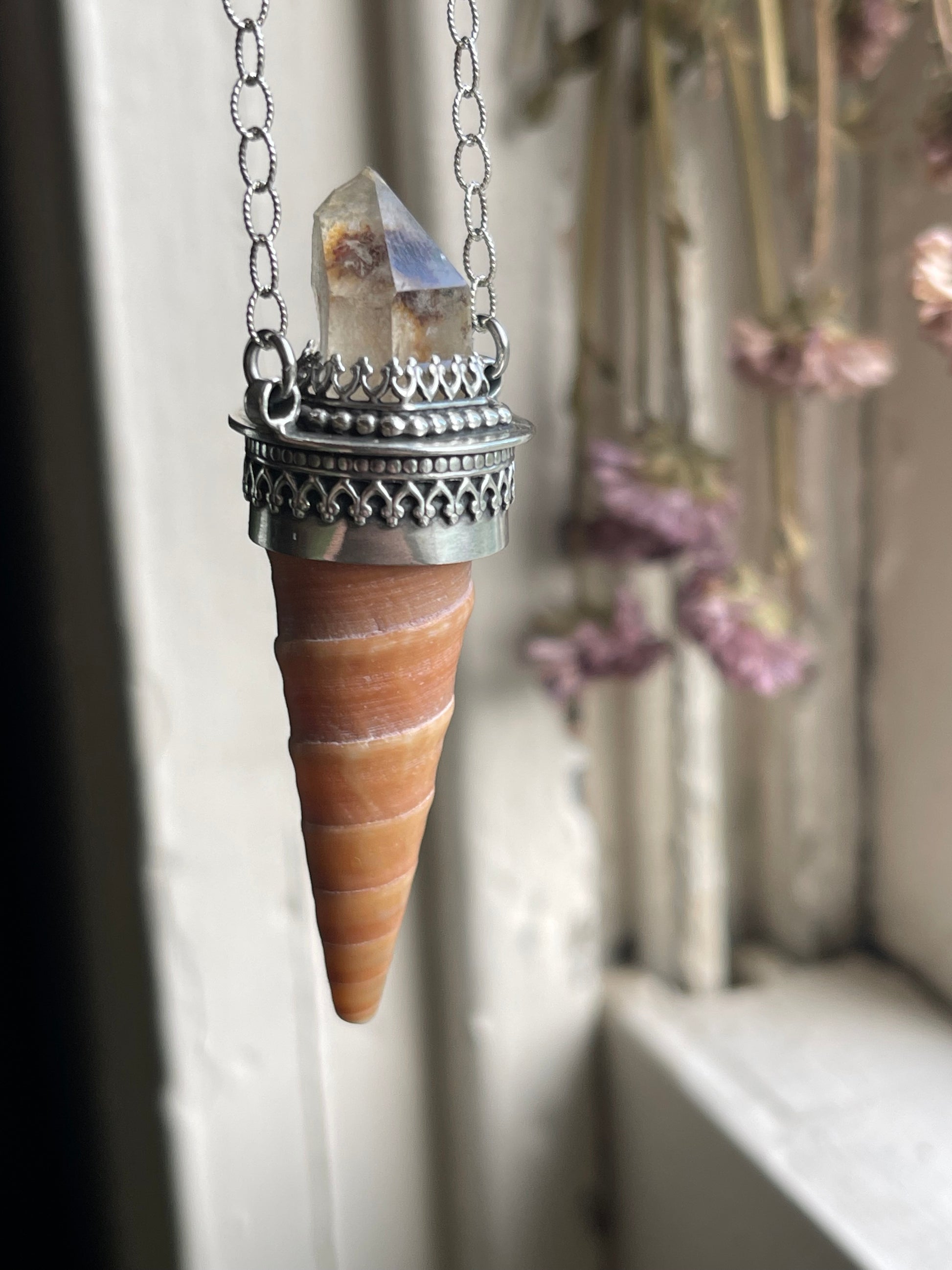 Leo • Included Quartz Cone Shell Statement Pendant Necklace