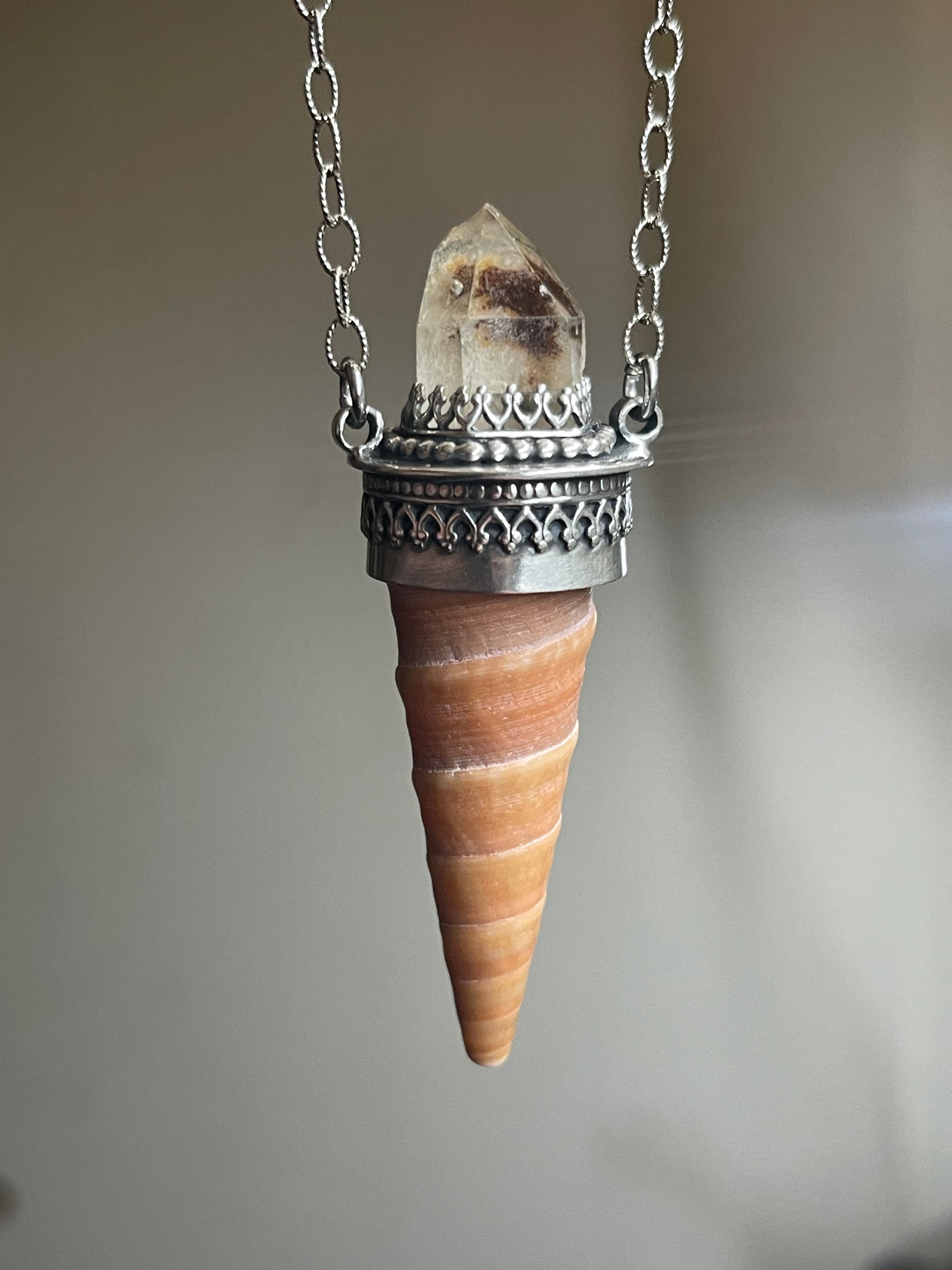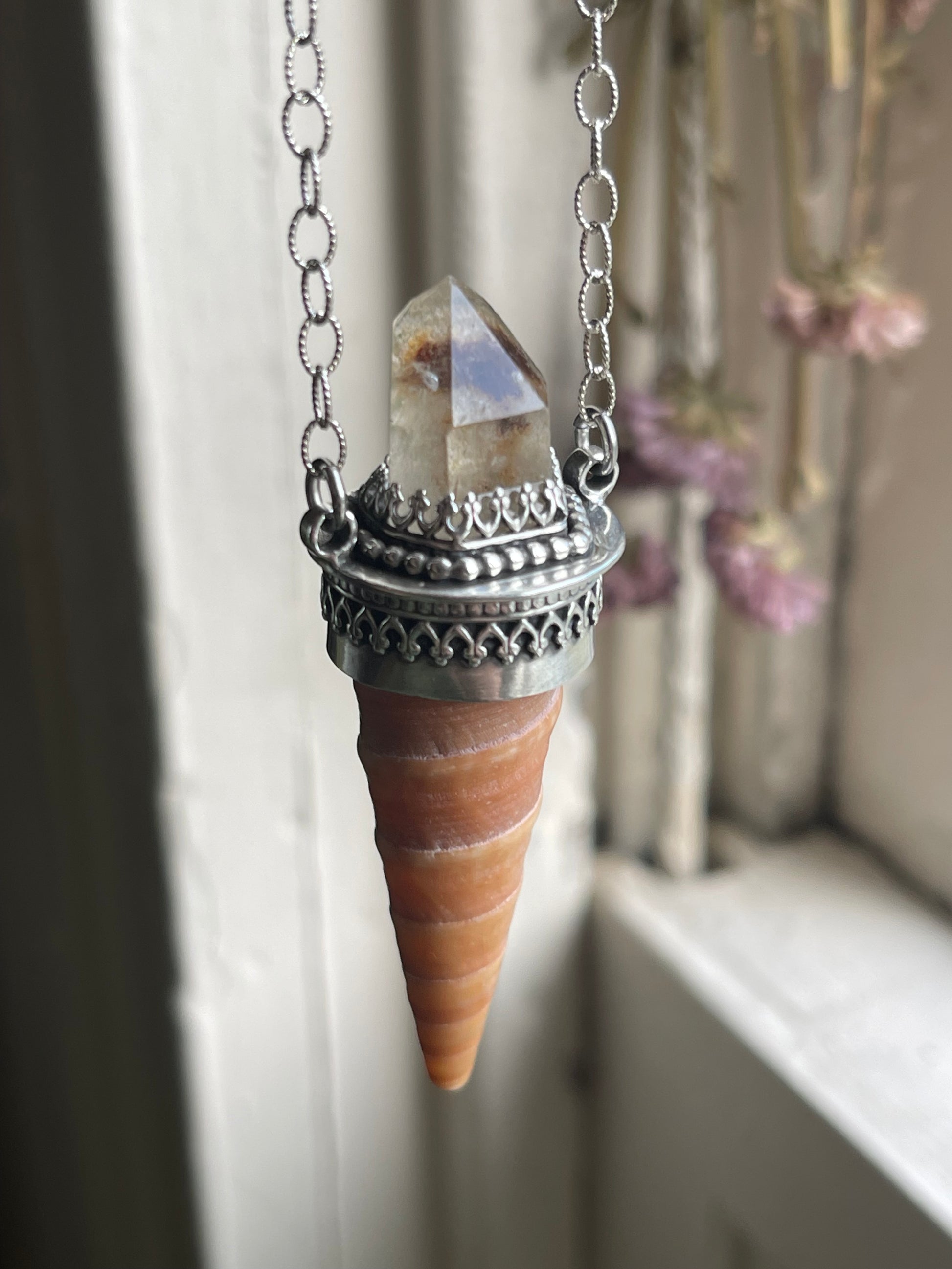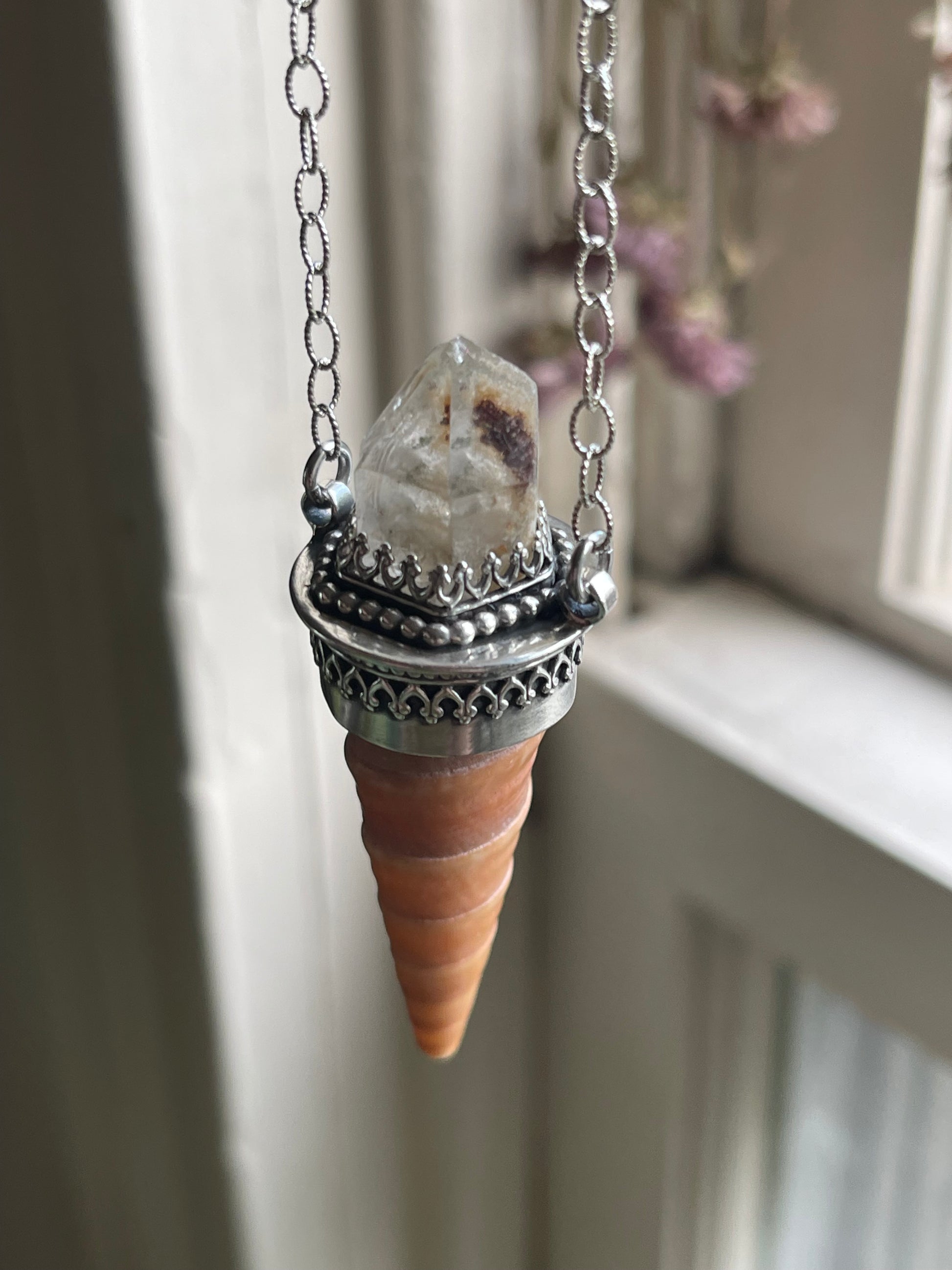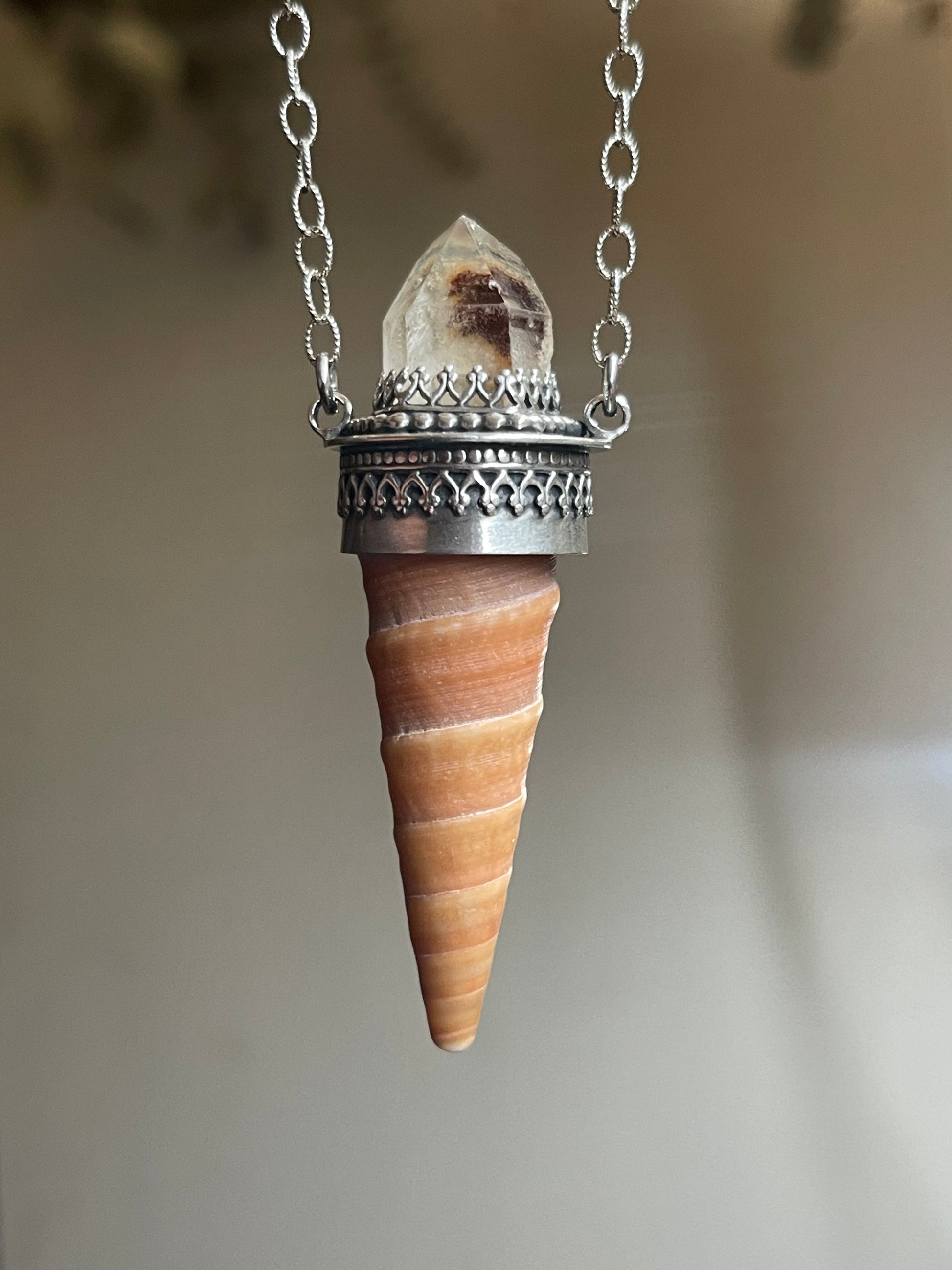 Leo • Included Quartz Cone Shell Statement Pendant Necklace