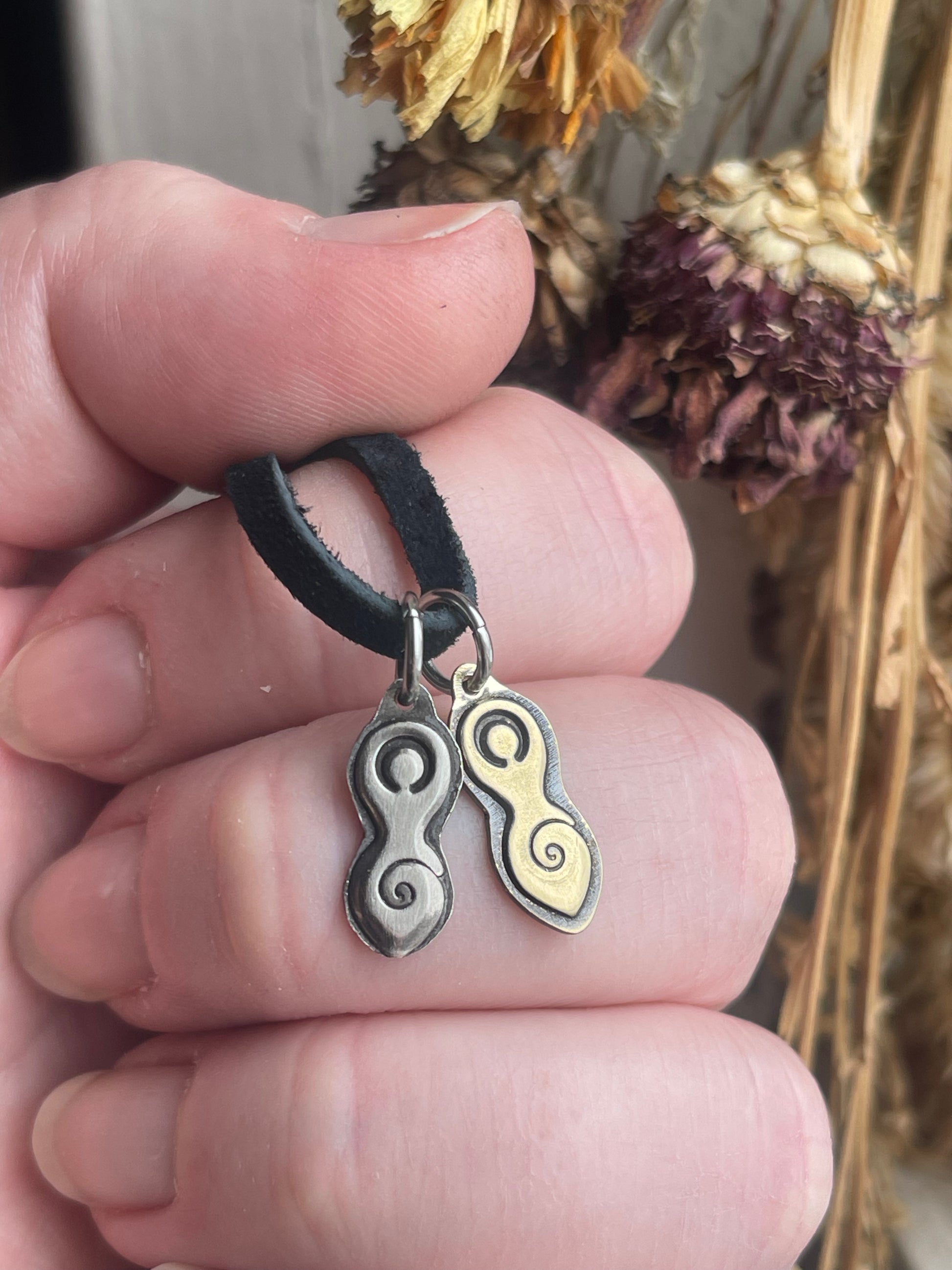 Charms come with stainless steel jump ring for optimum strength and durability and are strung on a black faux suede cord, silver chain can be added *see separate listing.