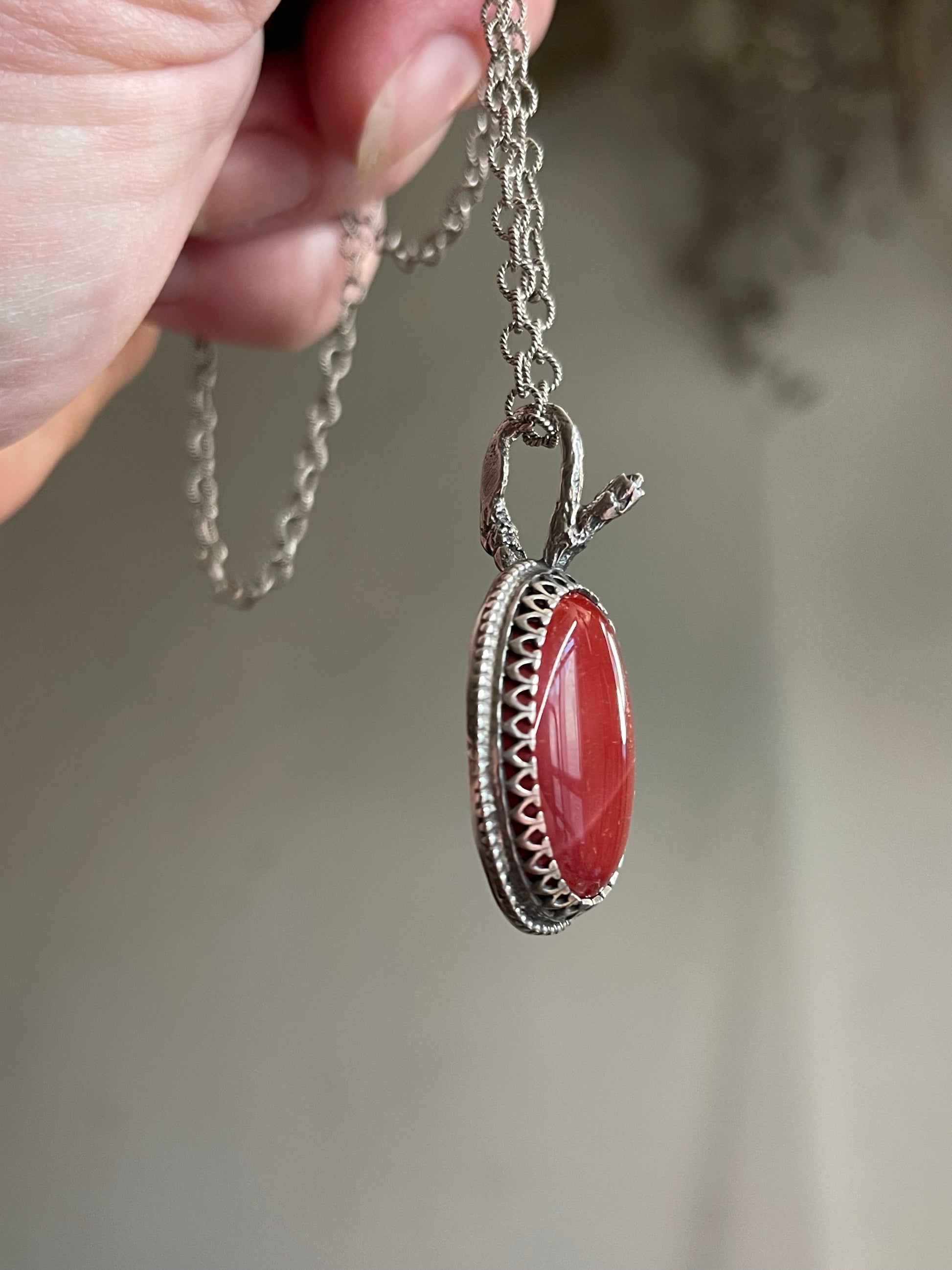 Material: Sterling silver, red jasper, cast tree-branch bail