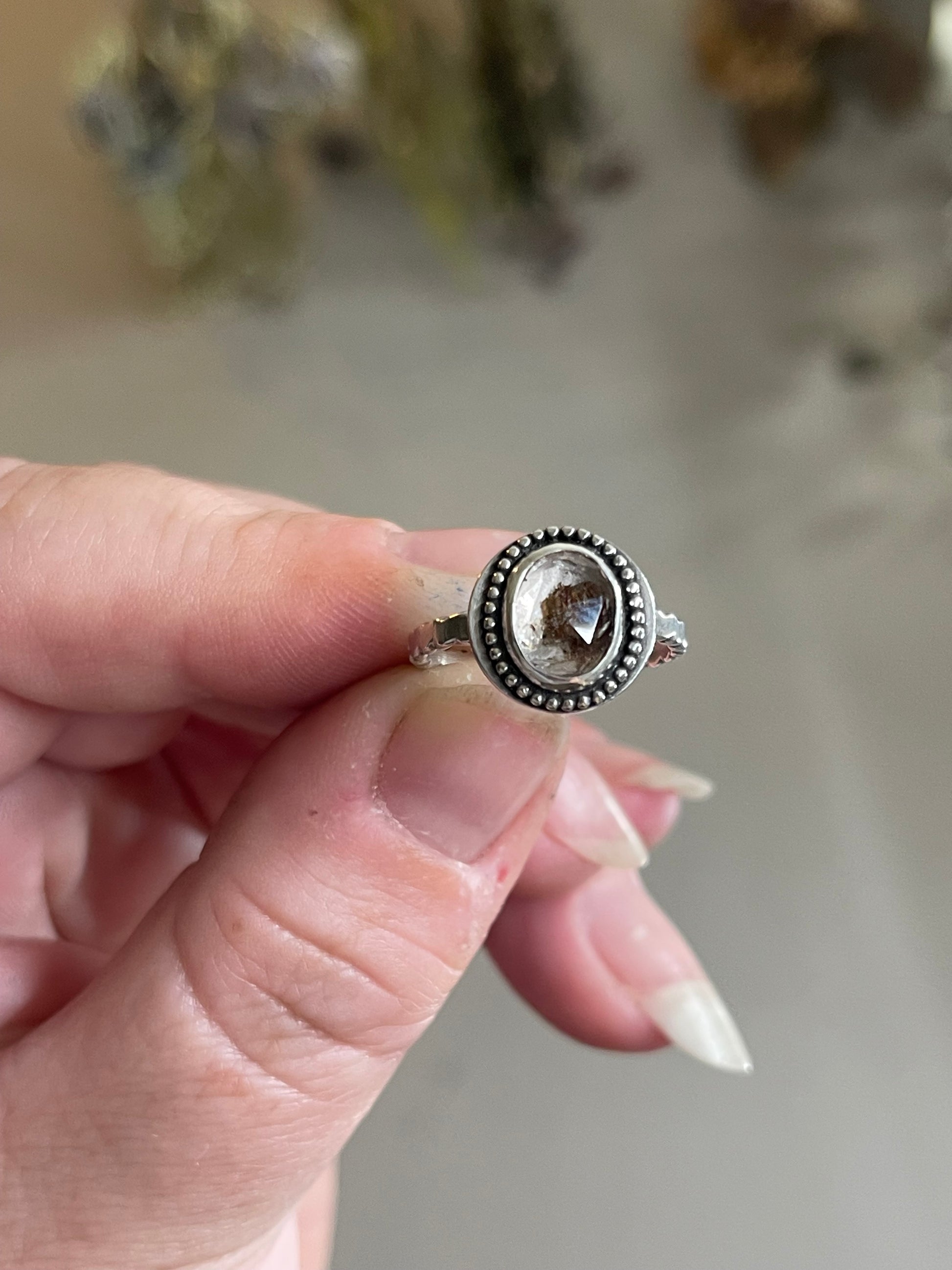 *Sand & Sun • Herkimer Diamond Solitaire Sterling Silver Ring • Size 7