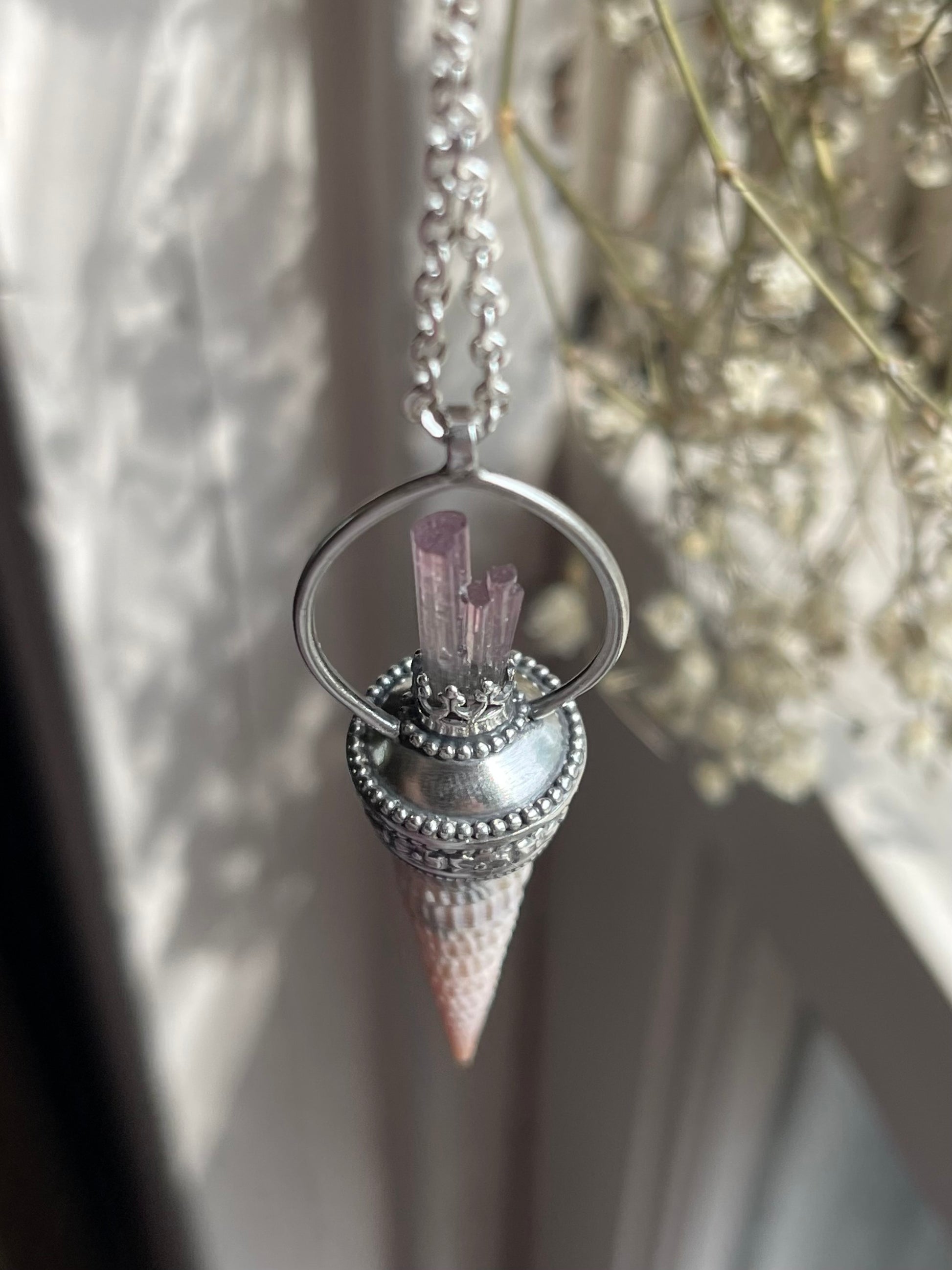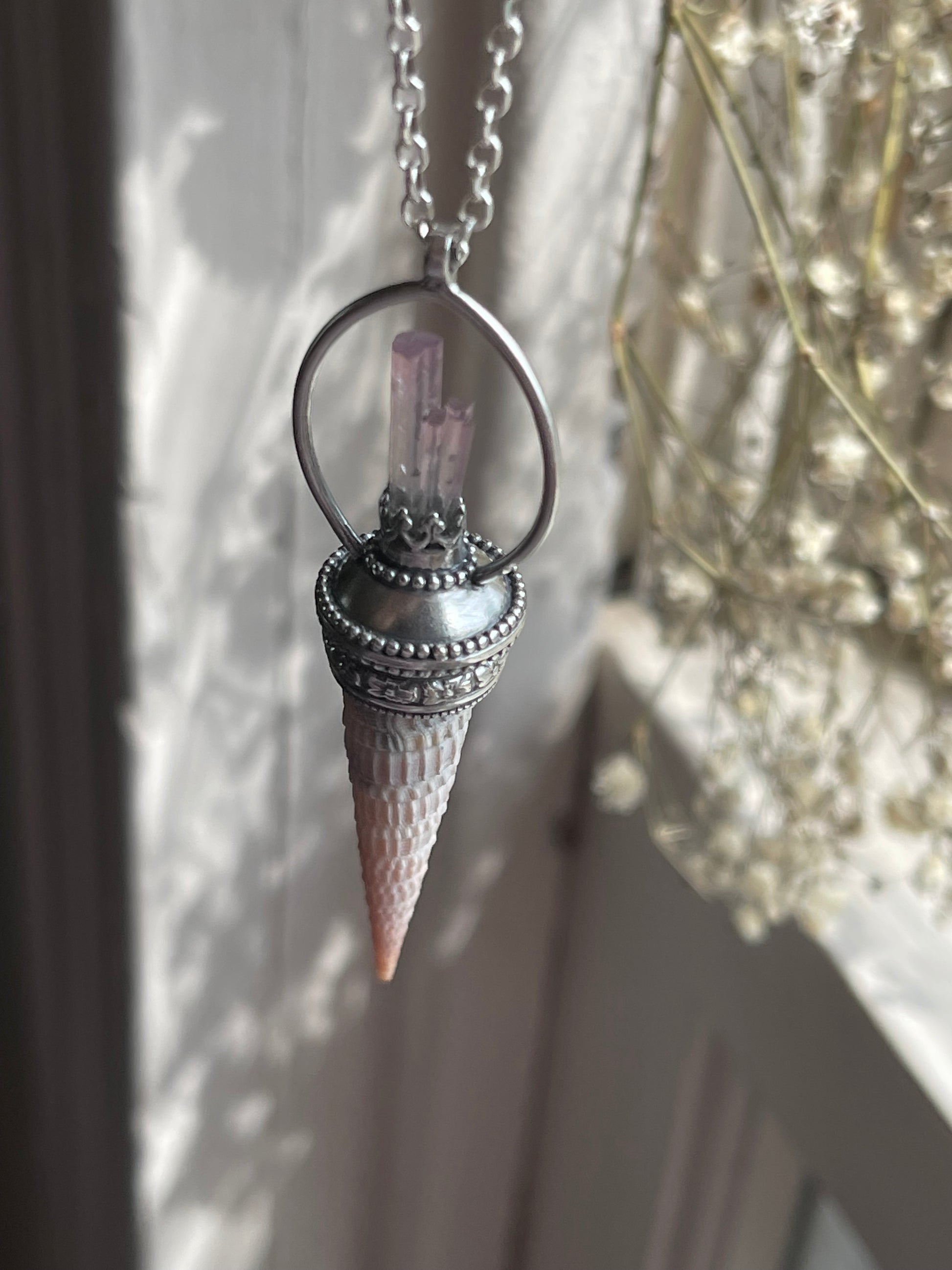 Elafonisi Tides • Pink Watermelon Tourmaline Crystal Shell Statement Pendant Necklace