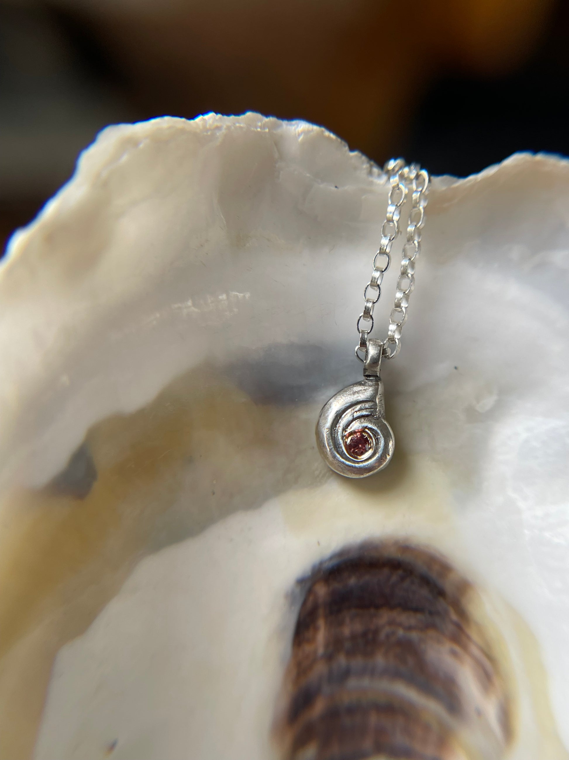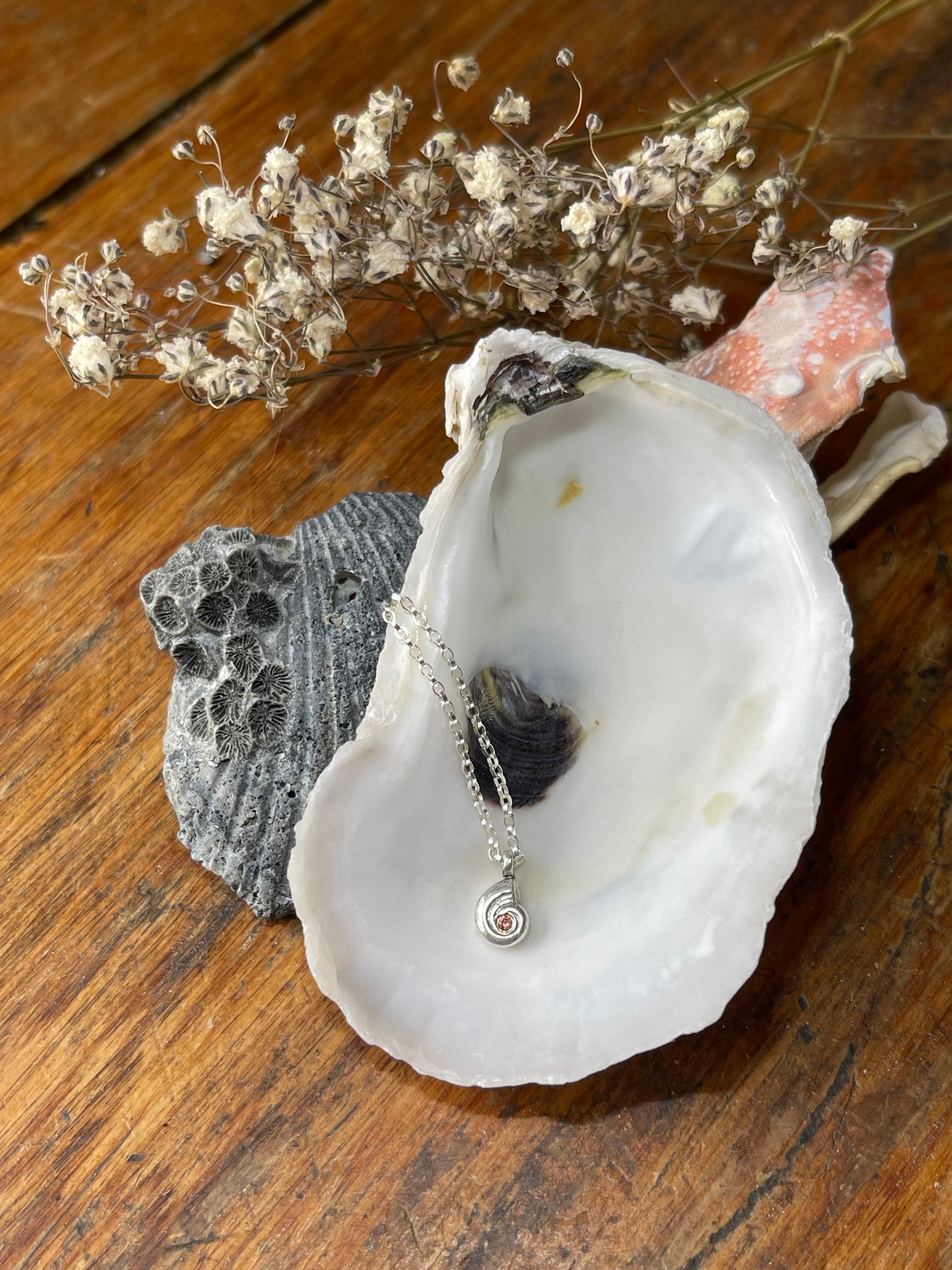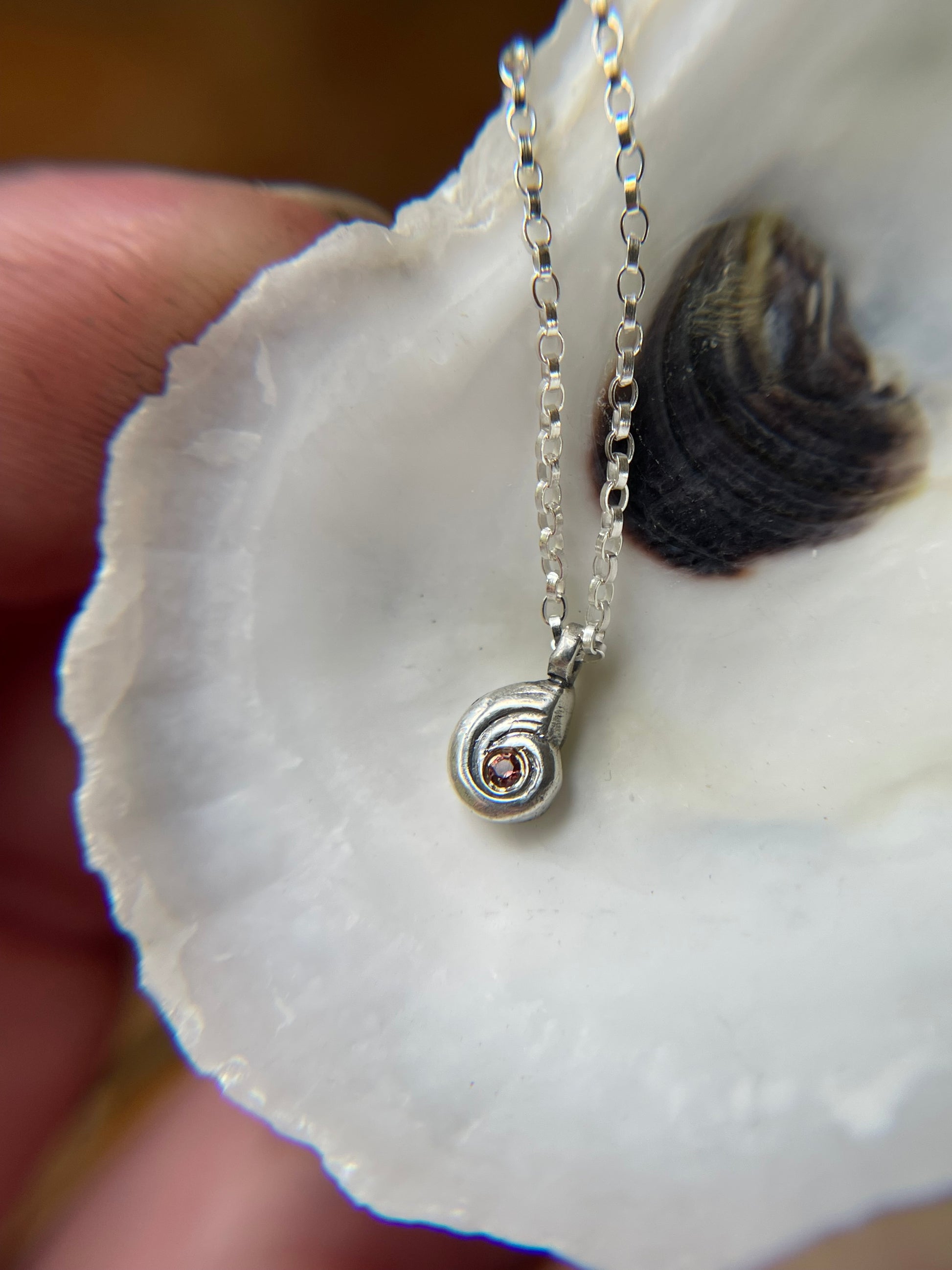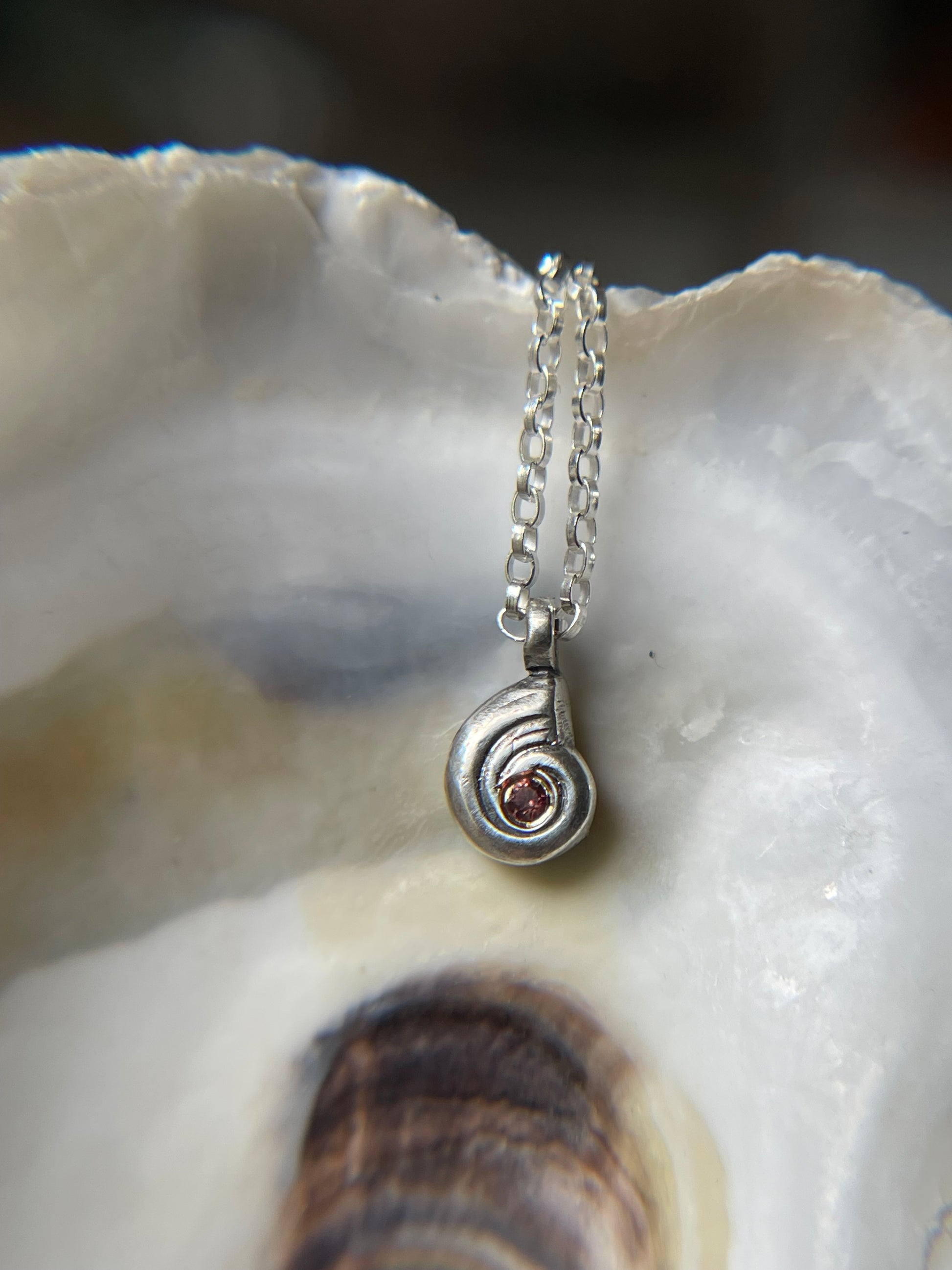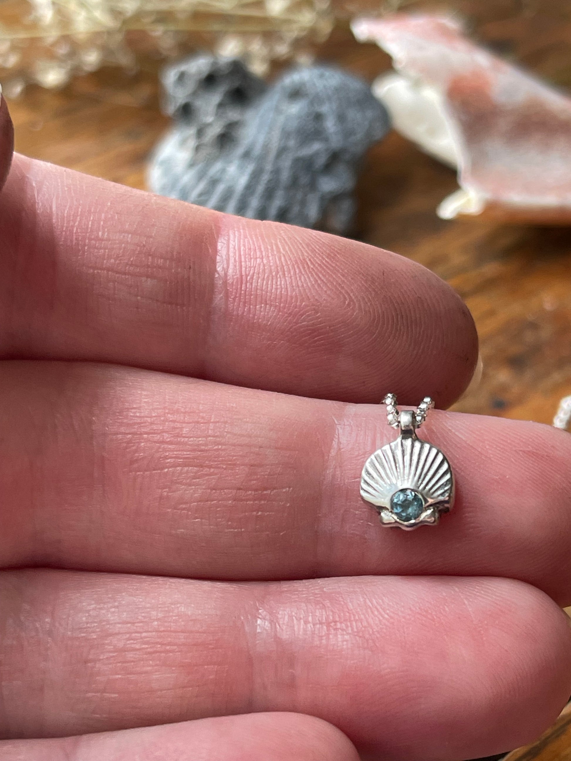 Introducing our limited edition made to order Seashells by the Seashore gemstone charm necklaces. Each shimmering shell is made to order with a sparkling gemstone accent. Choose from London blue topaz or green sapphire for the scallop shell charm and/or a tiny orange Padparadscha sapphire for the sea snail shell charm. Handcrafted from thick recycled sterling silver, these unique and simple necklaces will add a touch of elegant sparkle to your summer wardrobe.