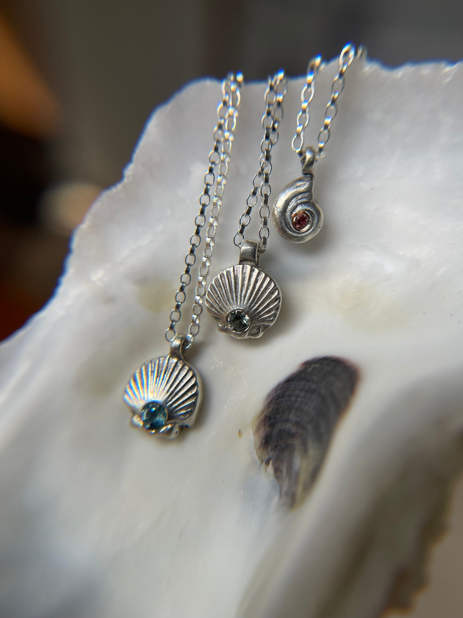 Seashells by the Seashore • Made to Order Faceted Gemstone Shell Charm Necklaces