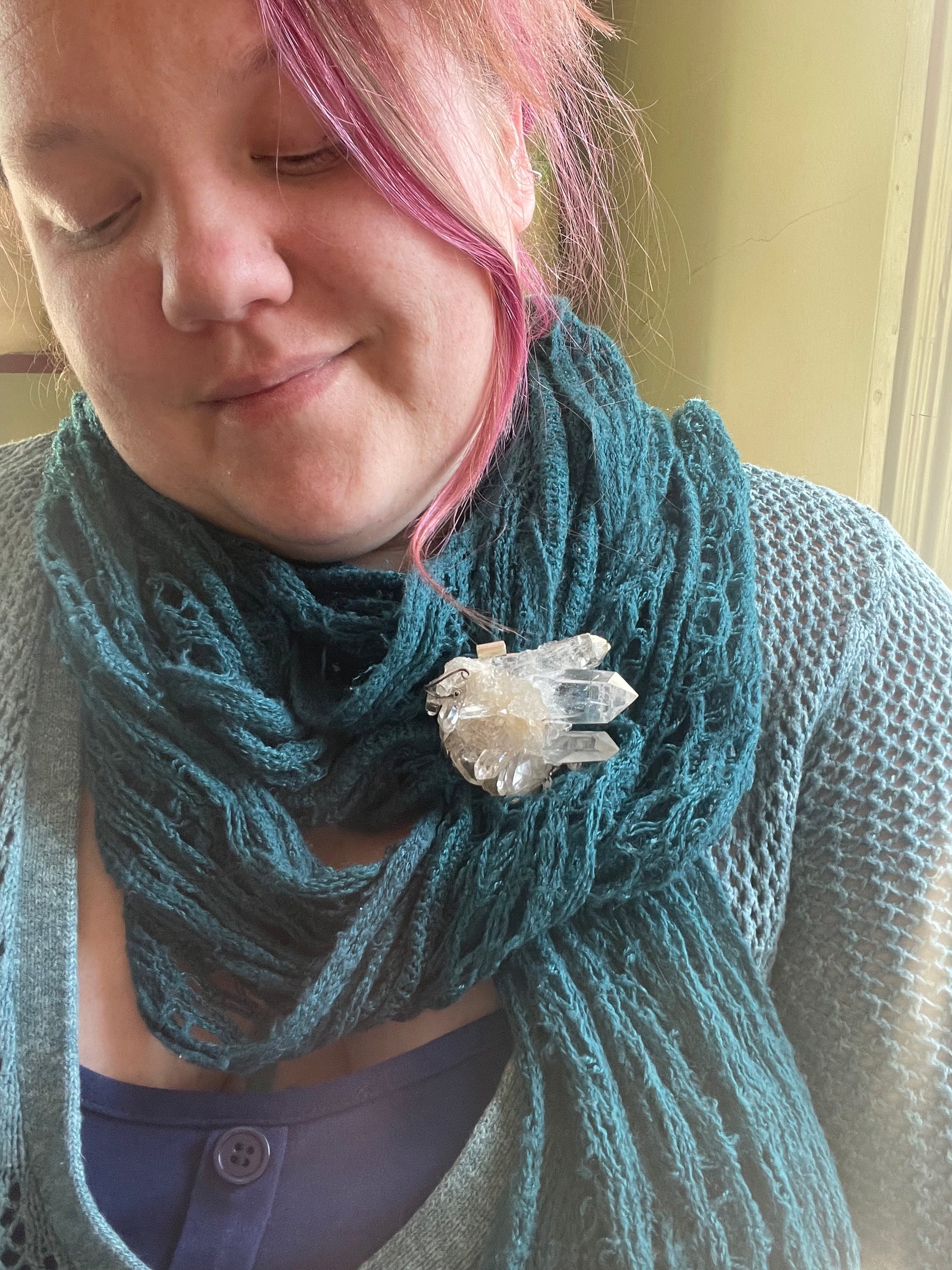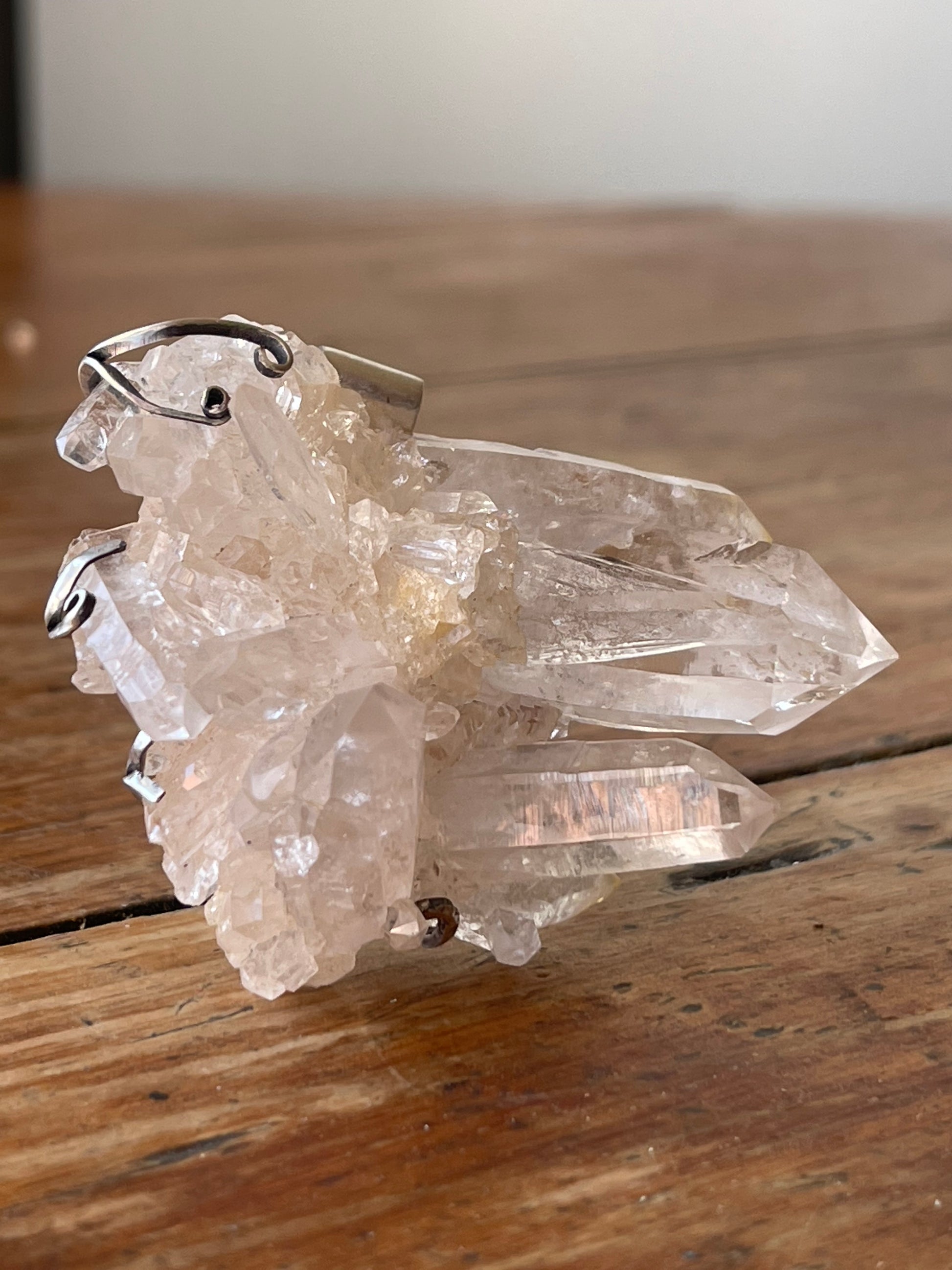 Crystalline Knowledge • Sterling Silver Quartz Crystal Cluster Pendant Brooch Combo Jewel