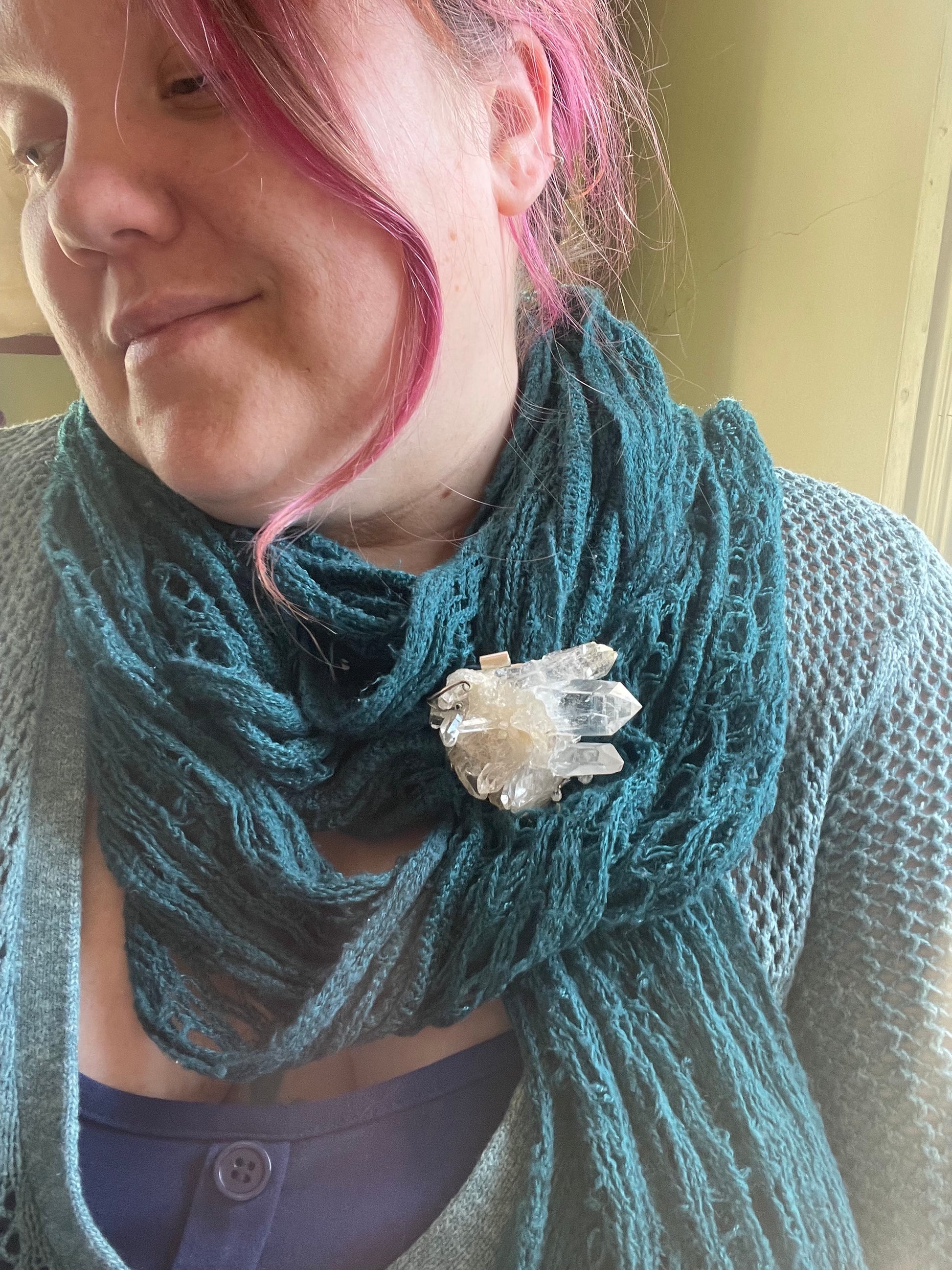 Versatile in form, this piece comes with a sterling silver pin, allowing it to be worn as a striking brooch or strung on a chain or cord as a pendant. A talisman of wisdom and transformation, crystalline knowledge is a reminder that truth is multifaceted, ever-expanding, and illuminated from within.