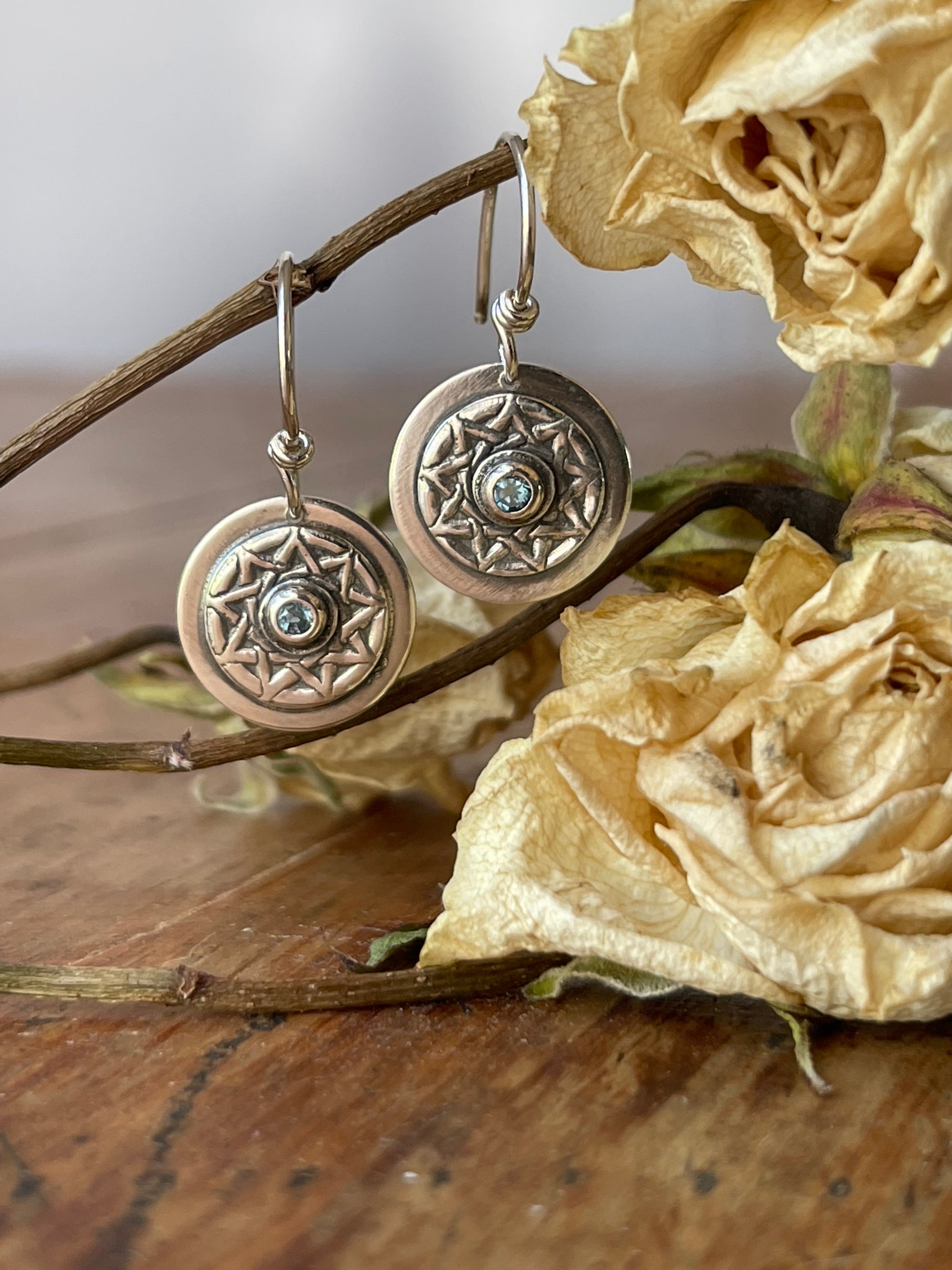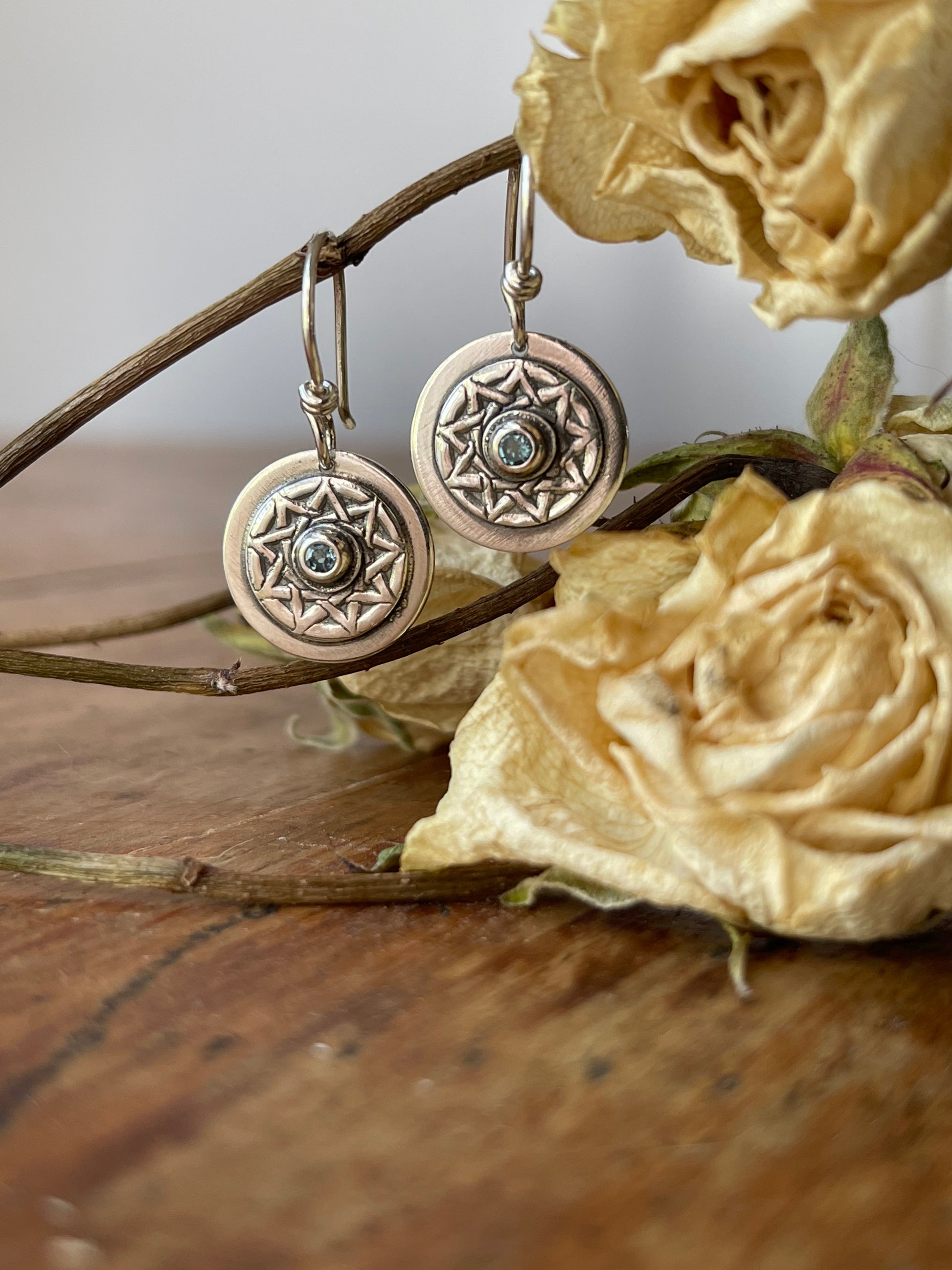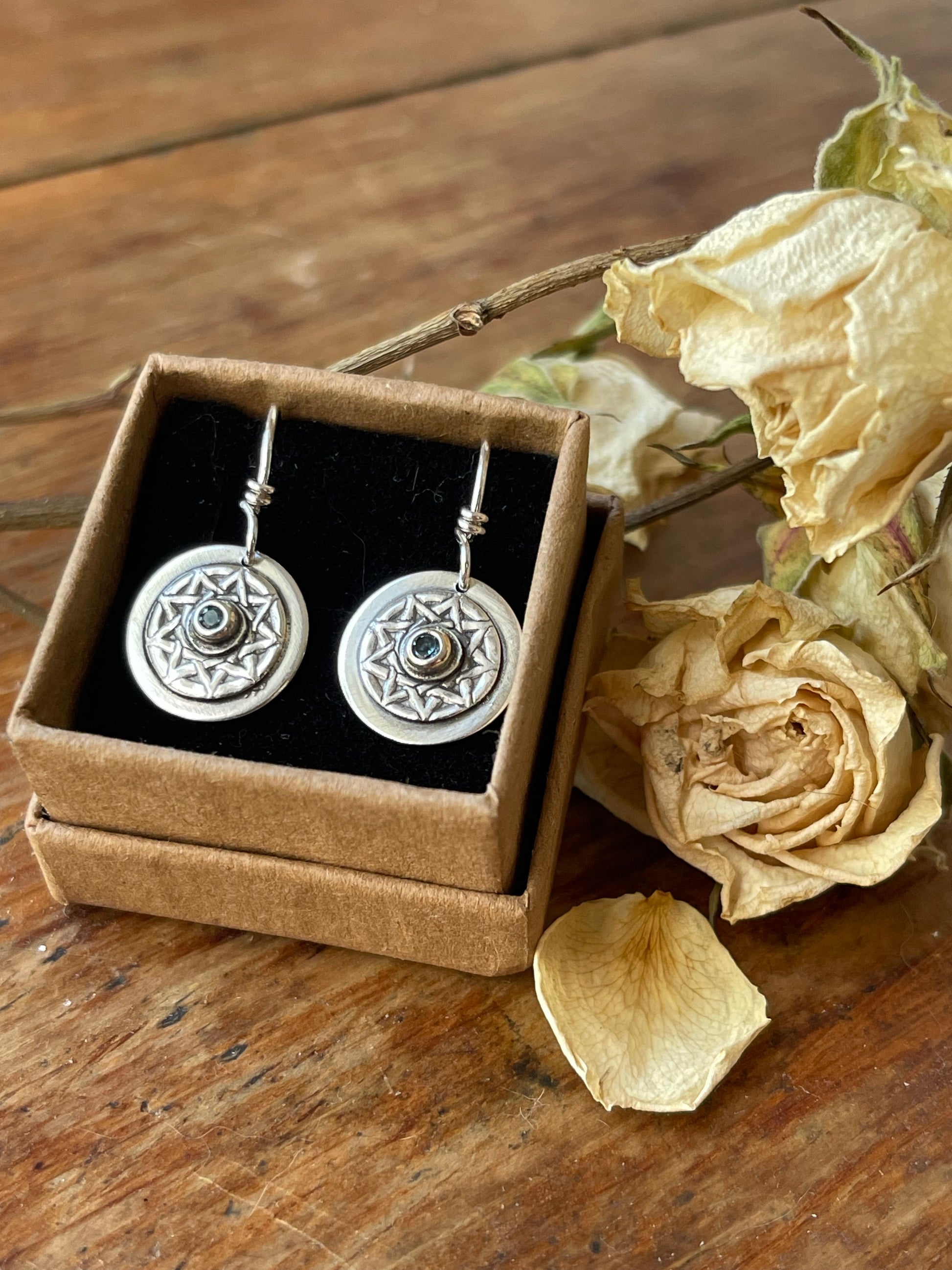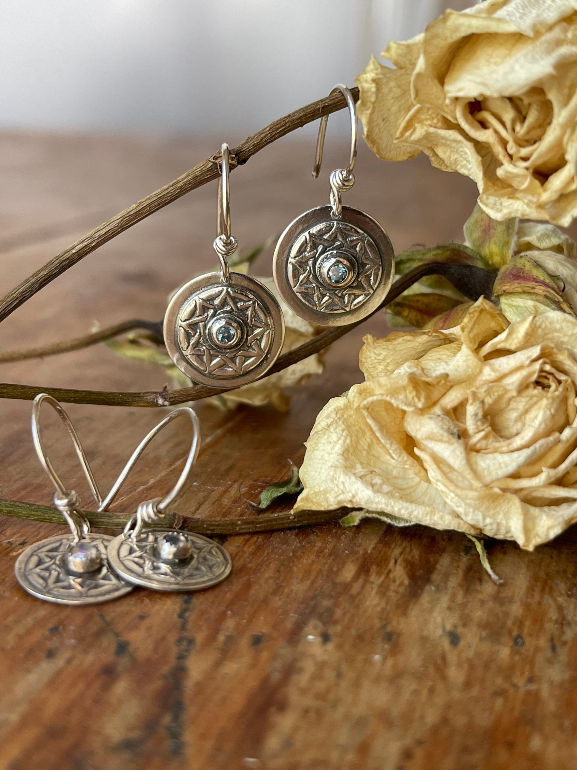 Earrings are appx 1/2 of an inch in diameter with a 1/4 of an inch drop